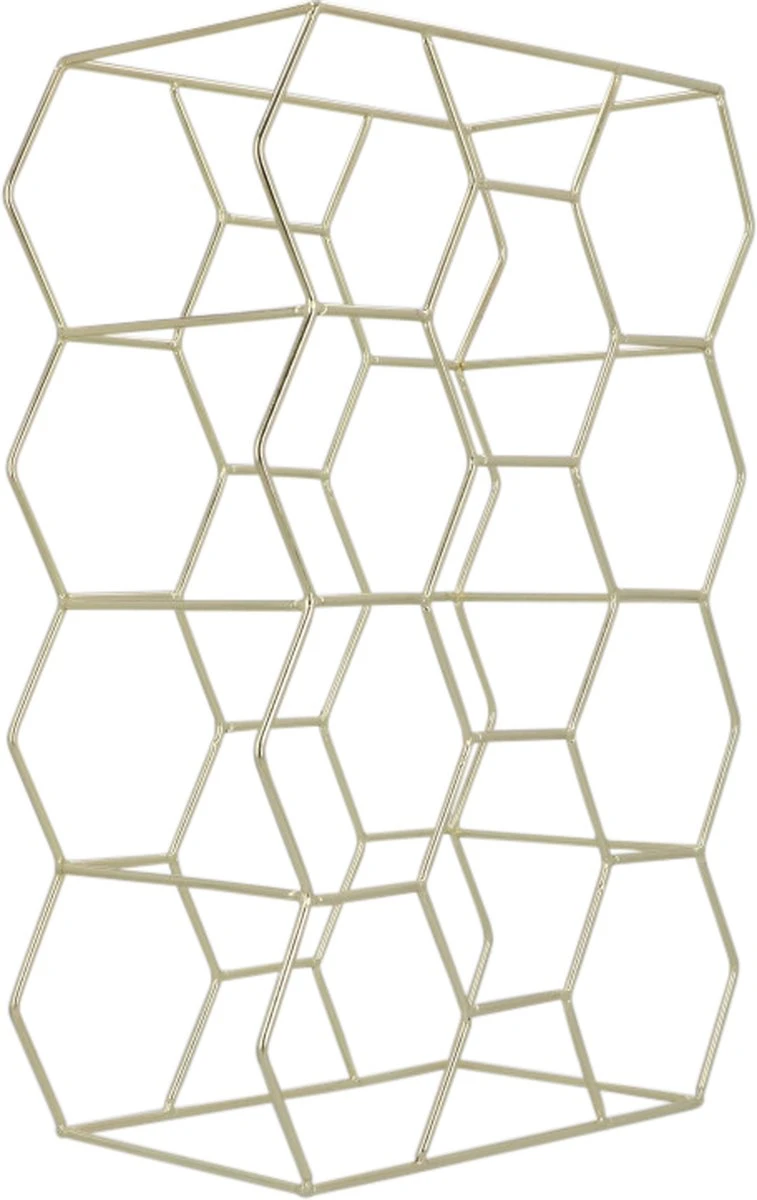 Ce casier à vin permet une belle présentation de vos bouteilles de vin. Au lieu de bouteilles en vrac sur le comptoir de la cuisine ou dans le placard, vous pouvez maintenant les ranger dans ce magnifique casier à vin industriel que vous placerez simplement dans votre salon. Il est également fonctionnel, car le rack ne prend pas beaucoup de place. Le casier est en métal et peut contenir 11 bouteilles. Il a la forme d’un nid d’abeilles. En raison de son design minimaliste de couleur or, le rack s’intègre aussi bien dans un style de vie industriel que classique. Le rack est disponible en noir et en or.