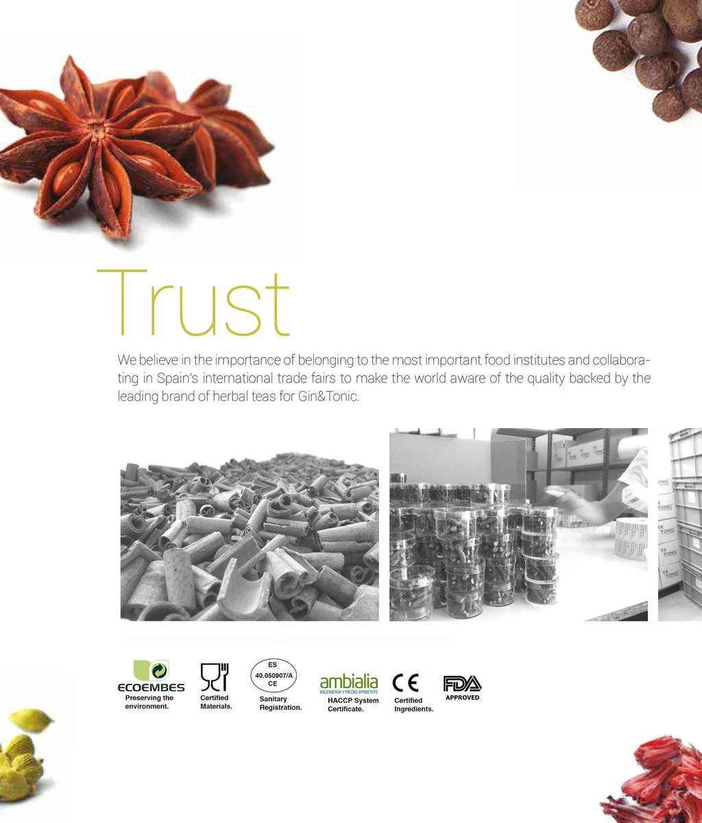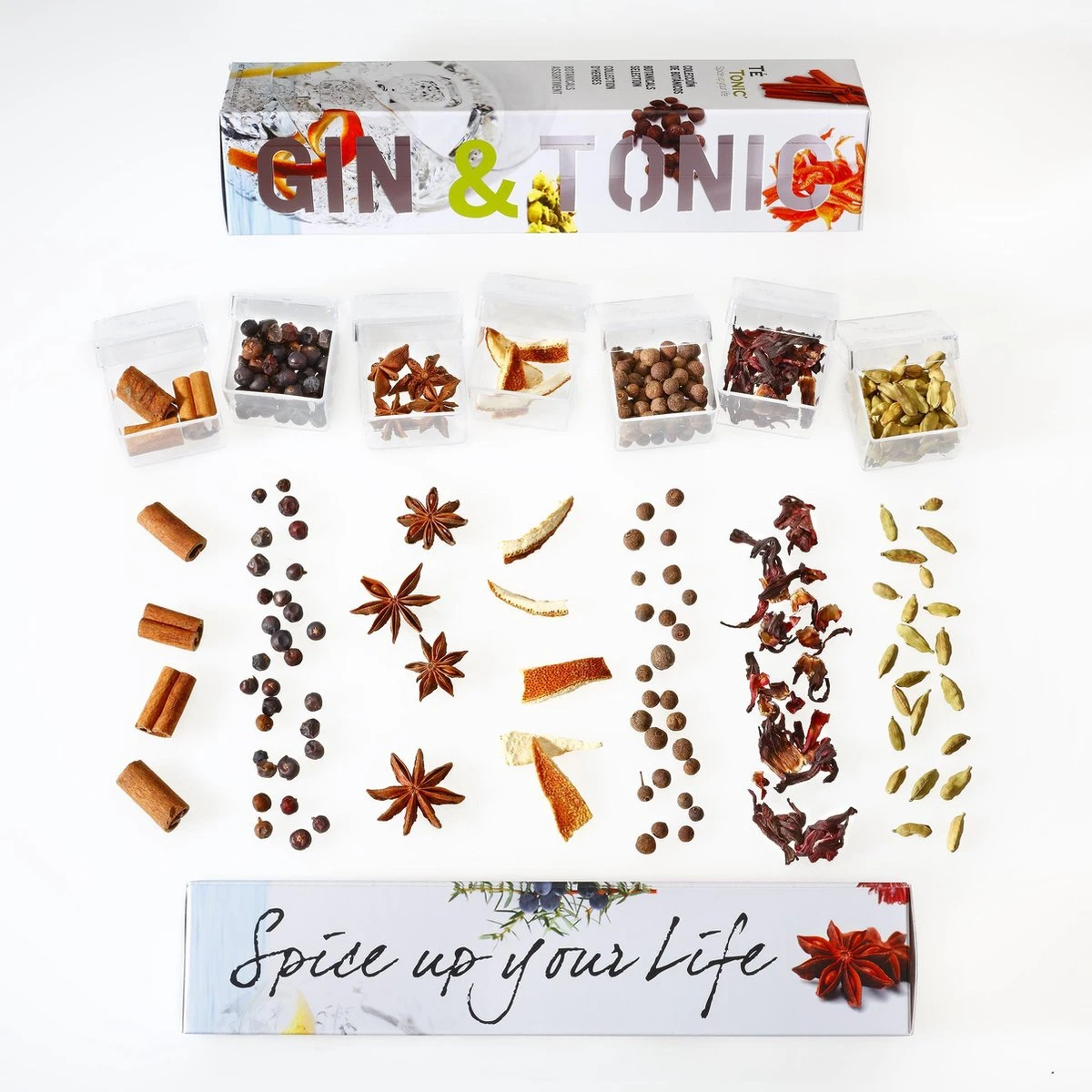 Les 6 botaniques inclus sont; Cassia cannelle, écorce d’orange en lanières, poivre jamaïcain, cardamome, anis étoilé, fleur d’hibiscus