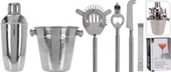 Relaxdays Cocktail Set 11-piece – Cocktail Shaker Set – With Bamboo Stand – Inox