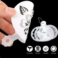 Cappuccino / Cacao Spreader Set – Cappuccino / Cacao Template – Réutilisable Barista Set – 16 Pièces