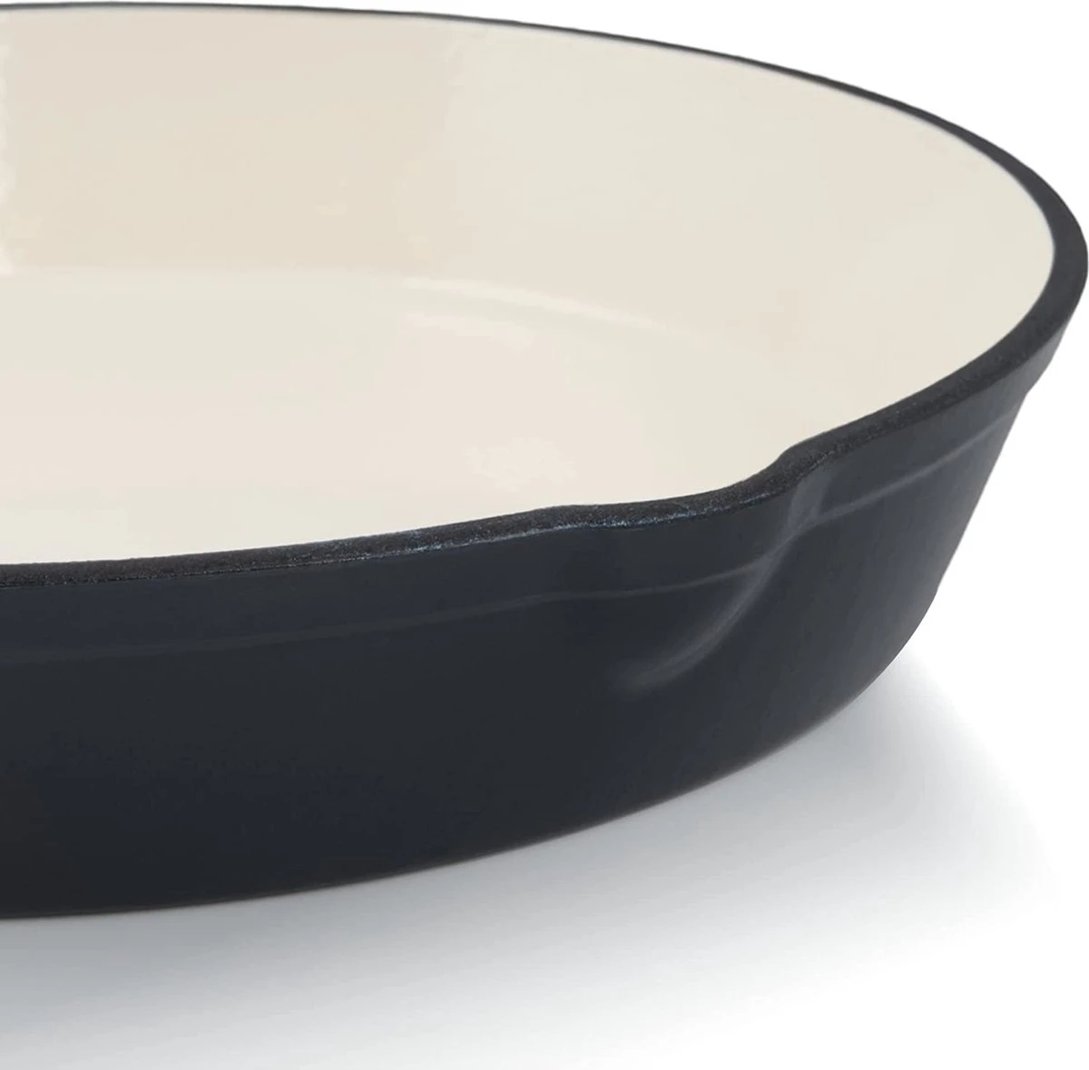 - Cuisine grill : Avec un diamètre de 24 cm, la poêle en fonte offre suffisamment d’espace pour des rôtis suffisants. Le poids d’environ 1,9 kg assure une position sûre. La poêle émaillée est donc le complément idéal de vos appareils de cuisine.