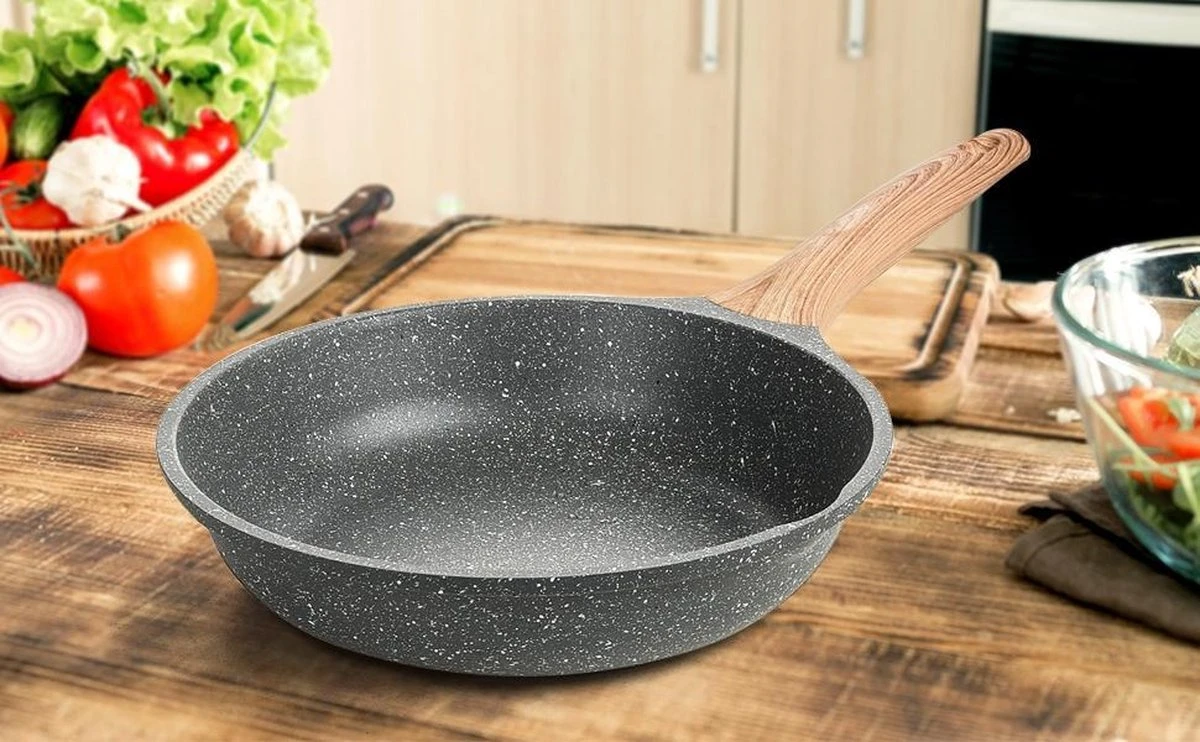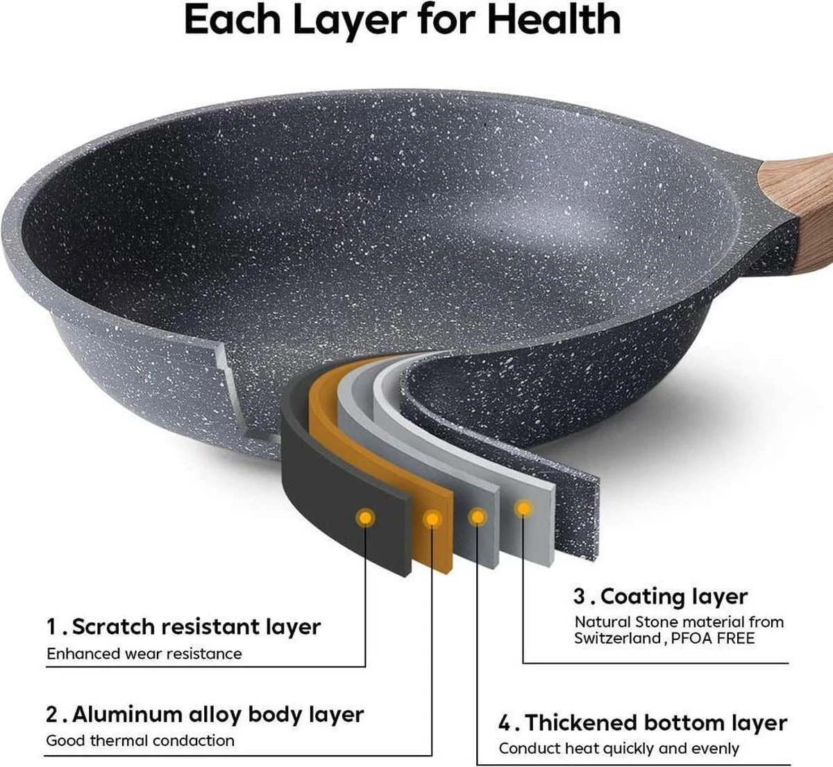 - 【CONCEPTION CLASSIQUE ET ÉLÉGANTE】 – La conception épurée des poêles à frire en pierre, intégrée à une poignée ergonomique en grain de bois, contribue au confort, à la commodité et à la résistance au glissement pendant la cuisson.