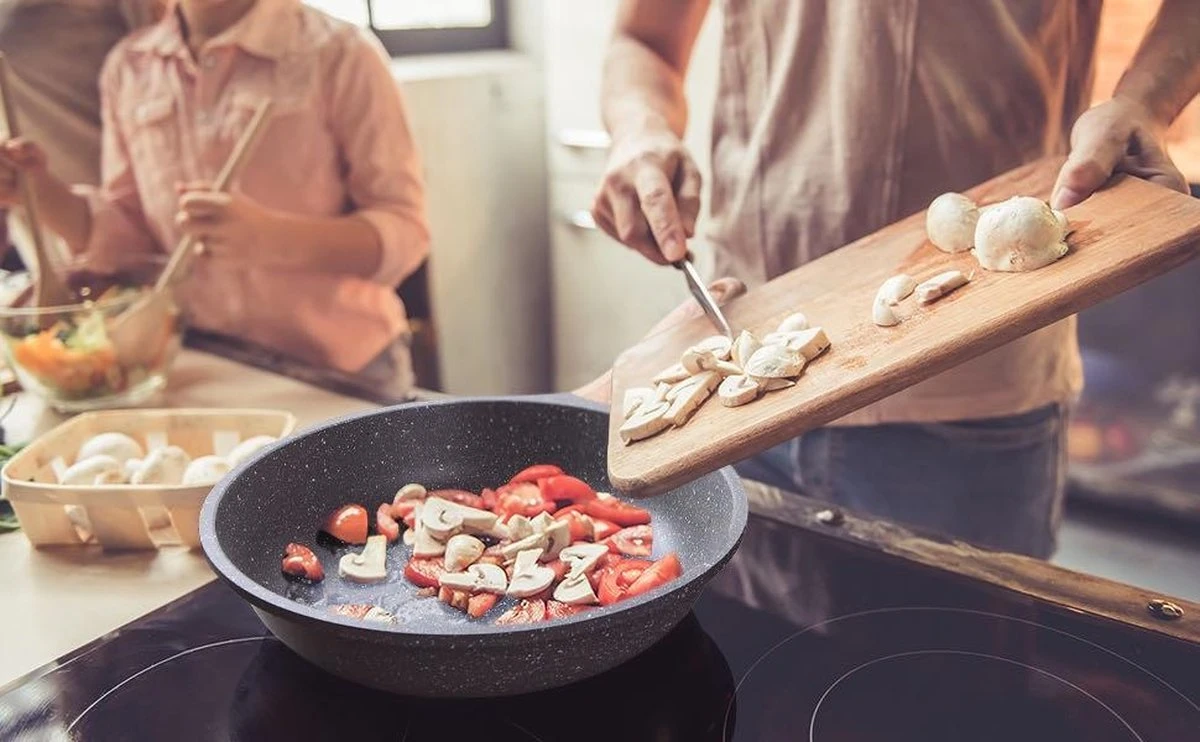 — Parce que la poêle antiadhésive conduit la chaleur rapidement et uniformément, elle peut atteindre la bonne température de cuisson à travers une chaleur moyenne et petite.