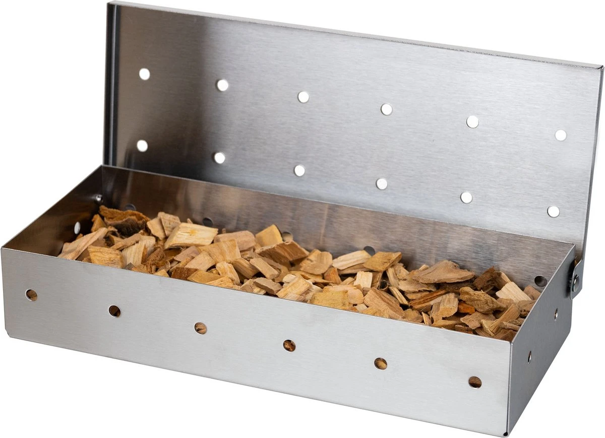 Le Smoker Box en acier inoxydable est idéal pour fumer des chips et peut également être utilisé en combinaison avec des granulés et des boucles de fumée.