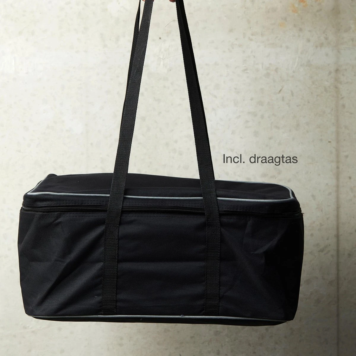 La table bbq par excellence, voici Carlo ! Ce barbecue compact au charbon de bois avec ventilateur est rapide et le charbon de bois brûlera bien pendant le barbecue sur cette table. Placez le barbecue au charbon de bois sur la table et asseyez-vous ensemble ou emportez-le au parc ou à la plage dans le sac de transport pratique pour un barbecue dans la nature. Carlo est votre ami de barbecue pour la vie !