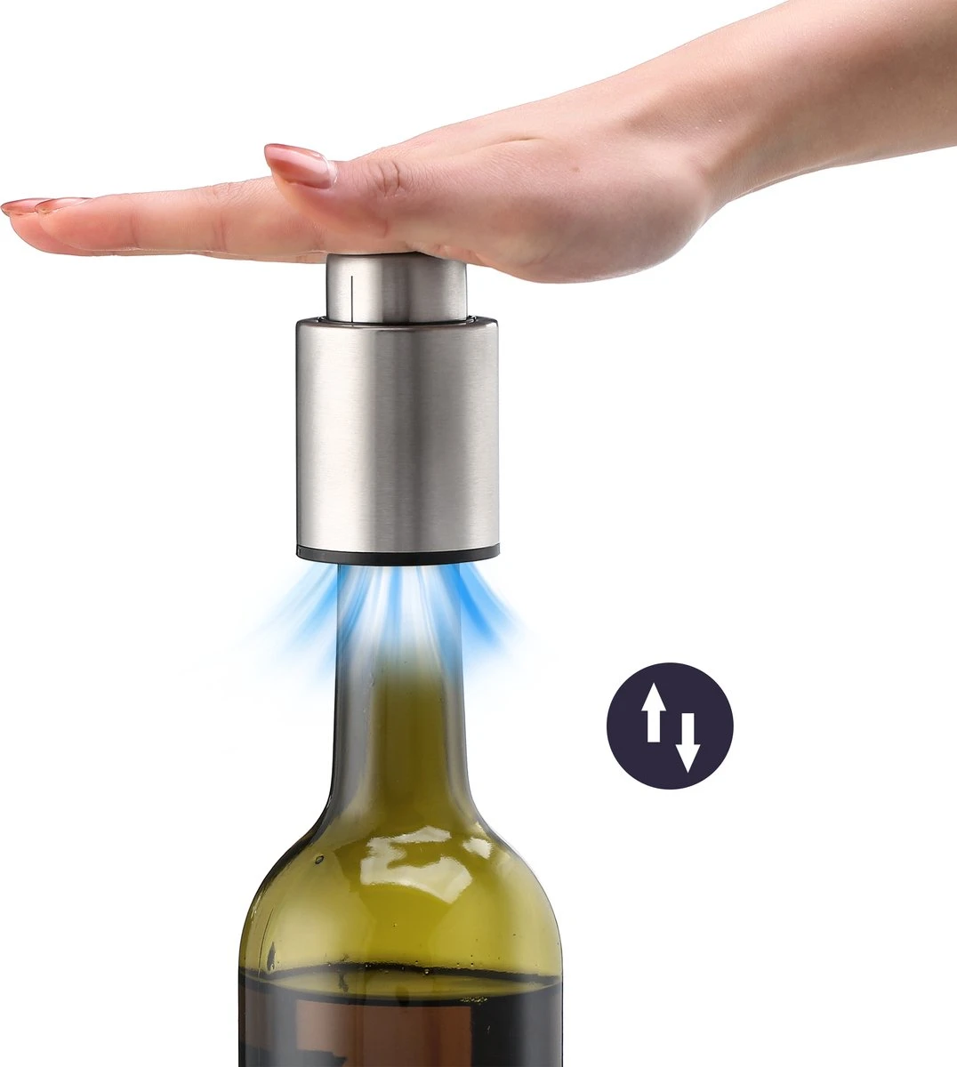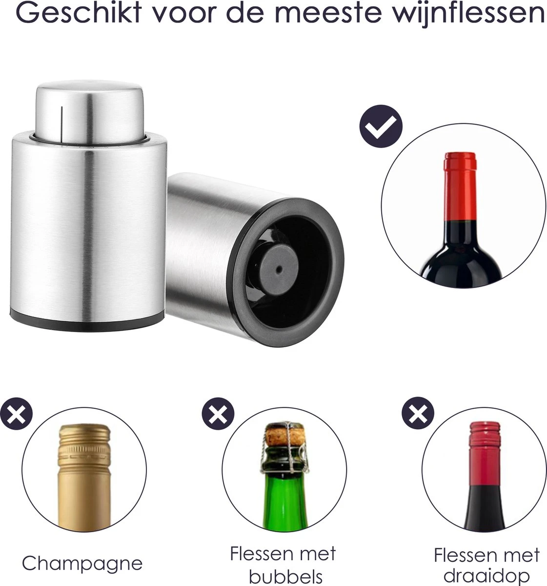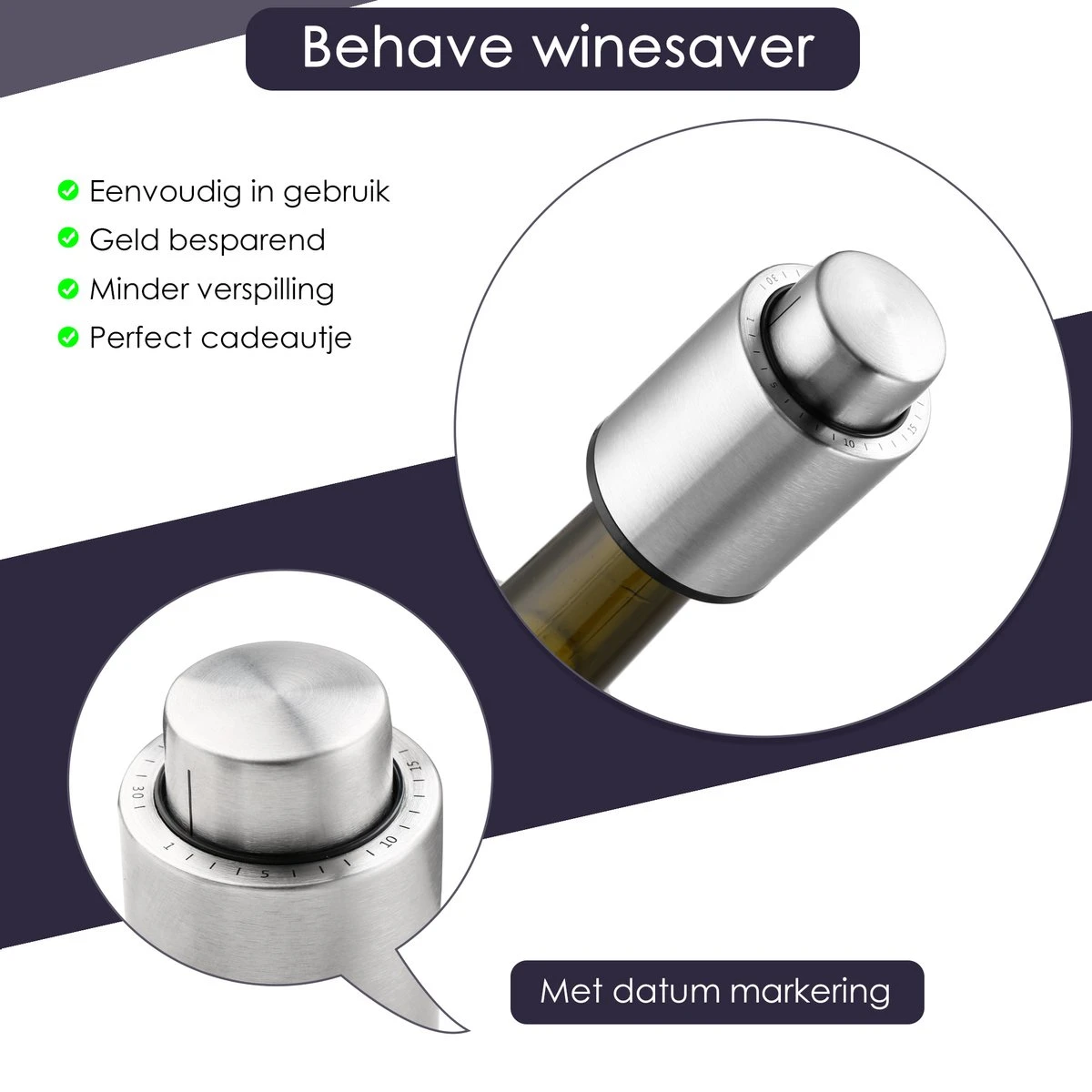 Behave Vin Stopper – Pompe à vide à Vin – Bouchon à vin – Bouchon à Vin – Économiseur de vin – Acier inoxydable – Bouchon de Bouteilles – Argent