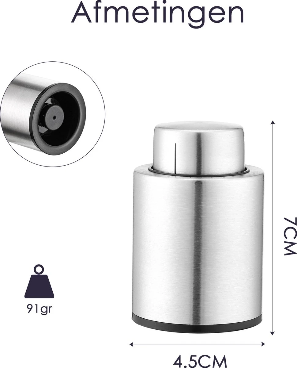 Le bouchon à vin est très facile à utiliser. Vous placez le bouchon de vin verticalement sur la bouteille de vin ouverte. Avec le bouton, vous vous assurez que l’air est pompé hors de la bouteille et vous pouvez conserver le vin plus longtemps. Lorsque vous souhaitez consommer le vin, le wineaver est facile à retirer de la bouteille.