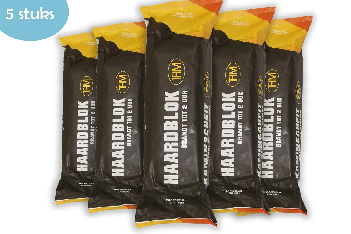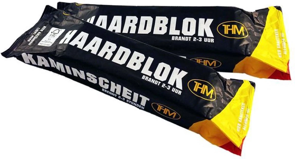 pare-feu 5 pièces. Idéal pour une cheminée et un foyer. Brûle plus longtemps et mieux que le bois normal. Facile à allumer: allumez les 2 extrémités et le foyer s’allumera automatiquement. La bûche a une durée de combustion de 2 à 3 heures.
