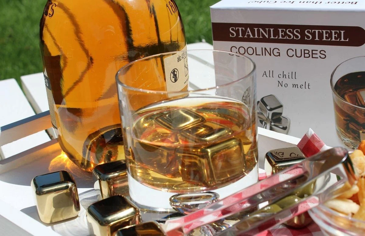 – Produit: Pierres à Whisky Couleur Or – Lot de 8