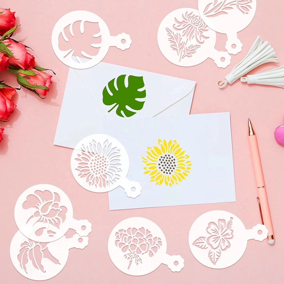 Pochoirs à Coffee floraux : vous obtiendrez 30 pièces avec différents modèles de motifs, y compris papillon, oiseau, feuilles, rose, tournesol, etc. Idéal pour la plupart des arts de la pâtisserie, des projets domestiques, des graffitis muraux et de la peinture sur bois.