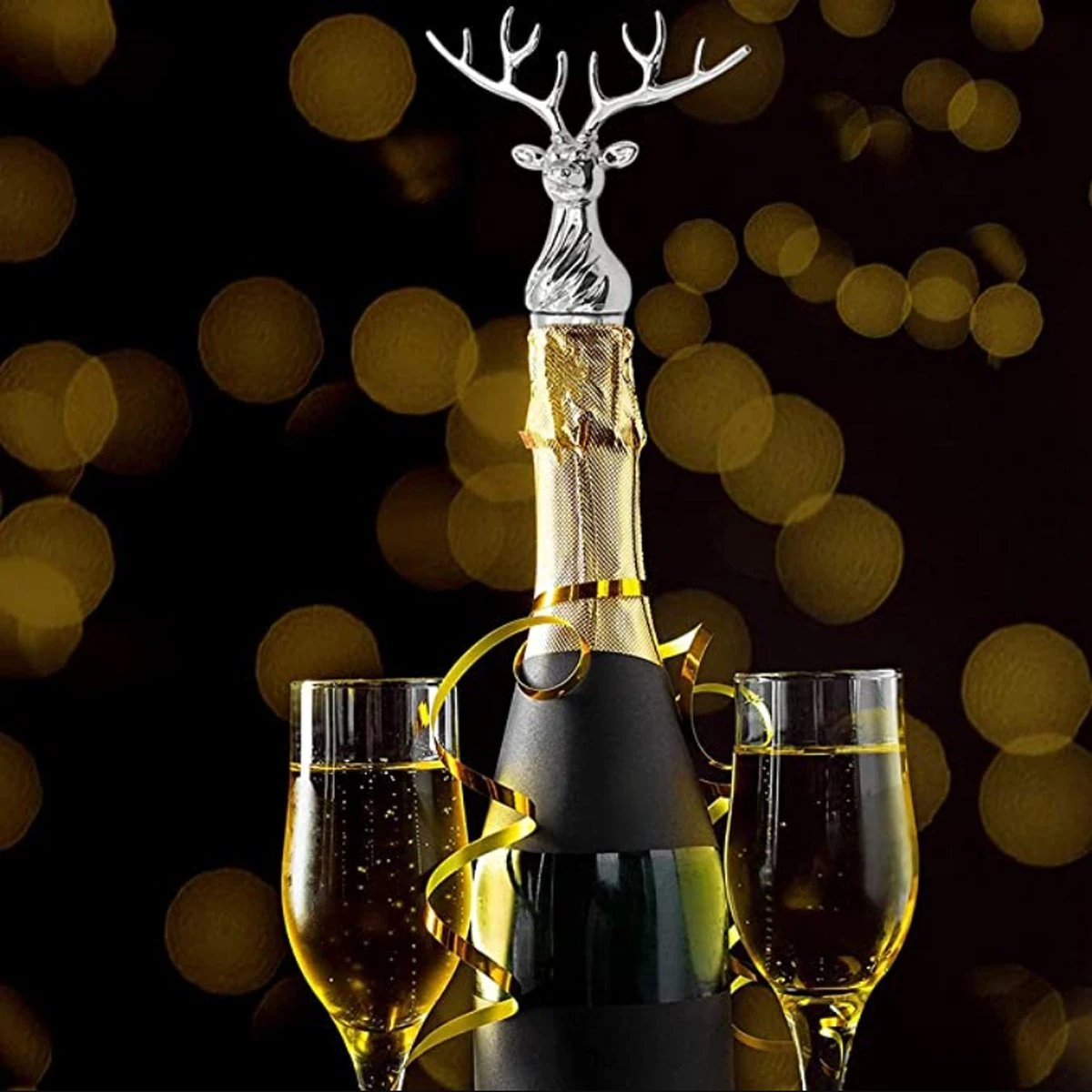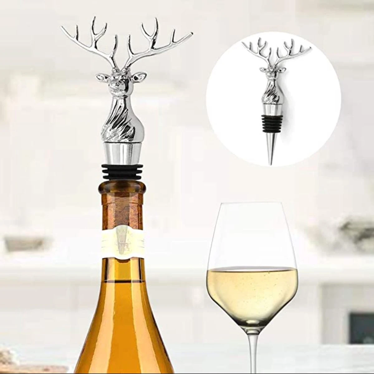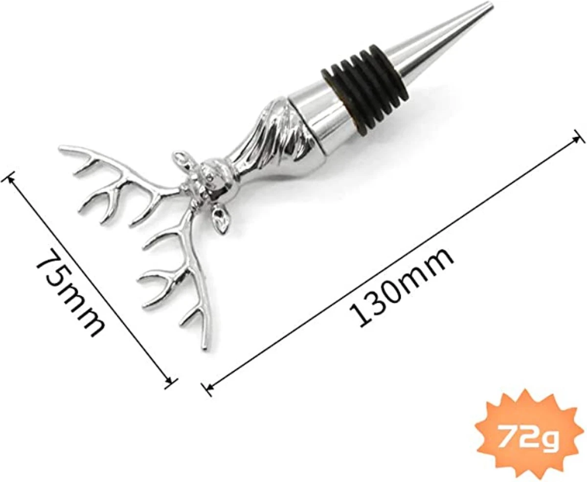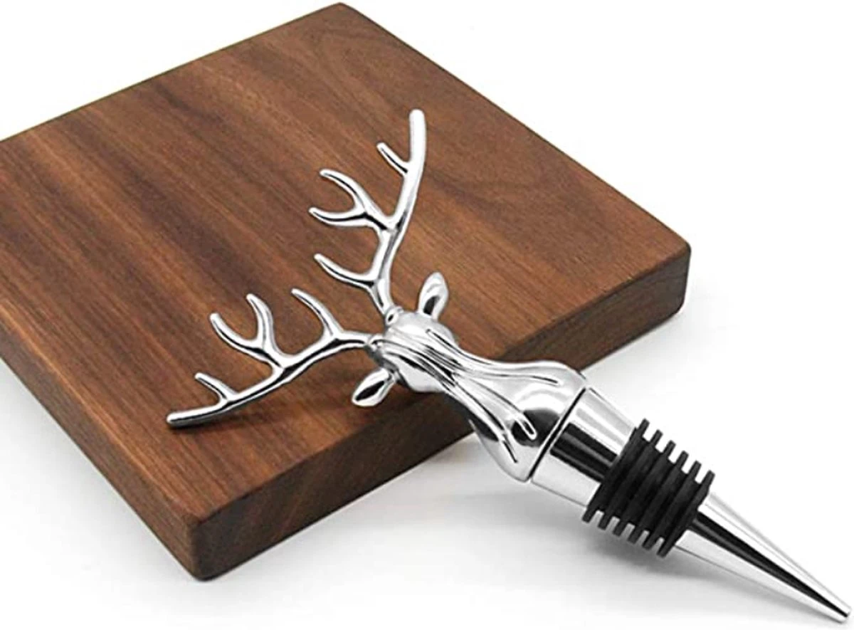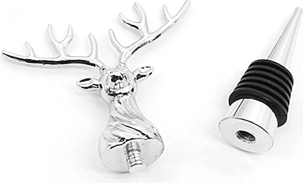 « Design personnalisé » : nos bouchons à vin fusionnent avec la tête de cerf pour mettre en valeur votre bouteille de vin préférée. La forme de la tête de cerf est très cool et le lustre métallique argenté est très beau. Les yeux vifs rendent chaque coin magnifique.
