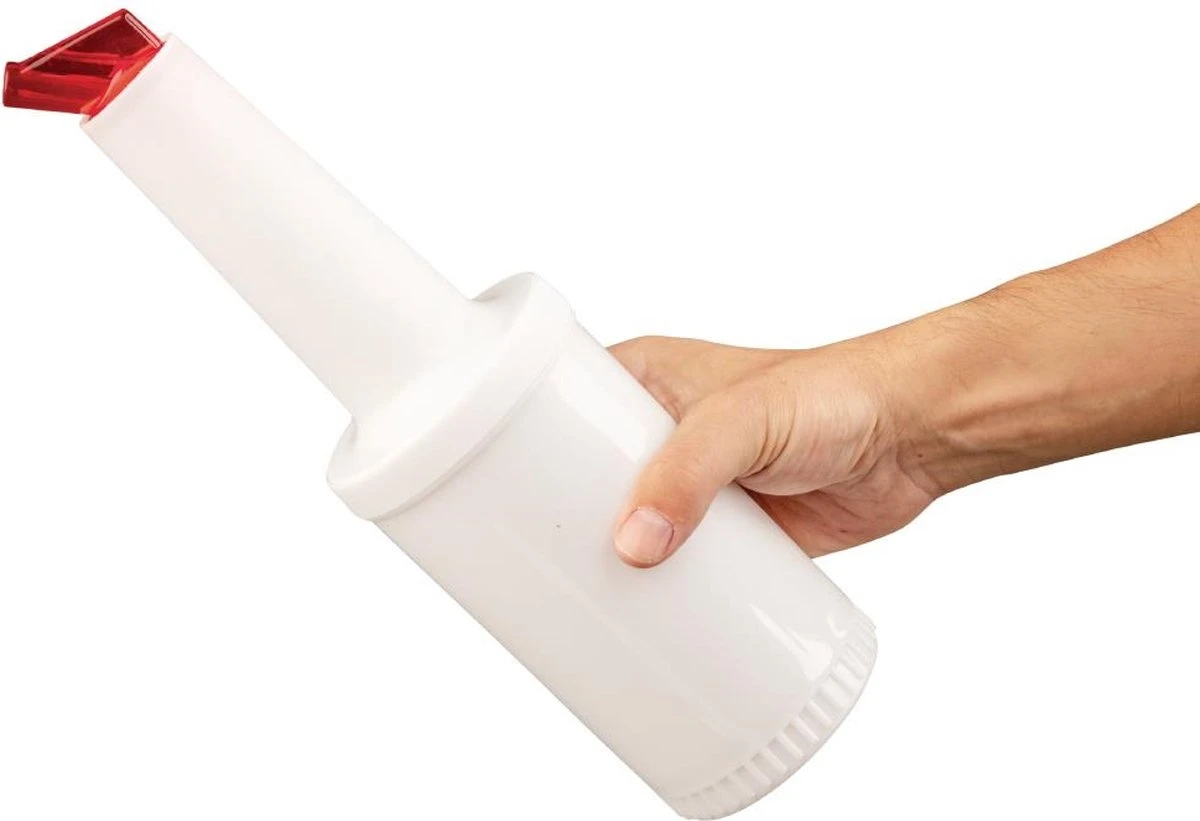 Ce verseur est un élément essentiel pour chaque bar et restaurant. Le bec verseur facilite le dosage correct et grâce à la conception en plastique lisse, le bec verseur est facile à nettoyer. Le couvercle à vis ferme la barre verseuse. A une capacité de 1 litre.