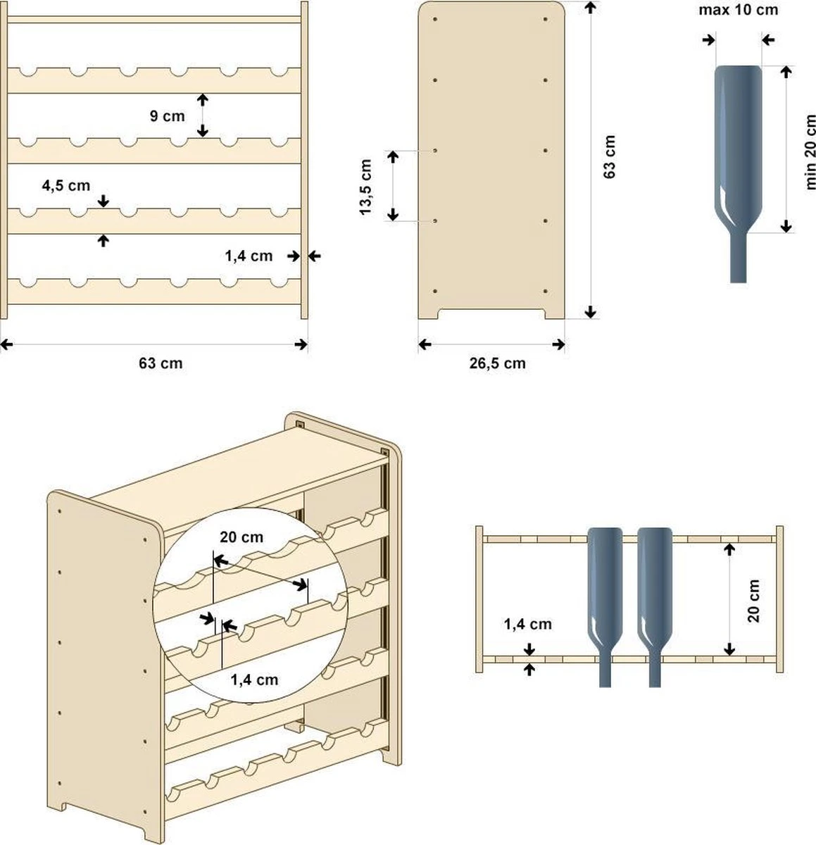 Système de casier à vin / casier à bouteilles, pour 24 bouteilles de bois composite, naturel
