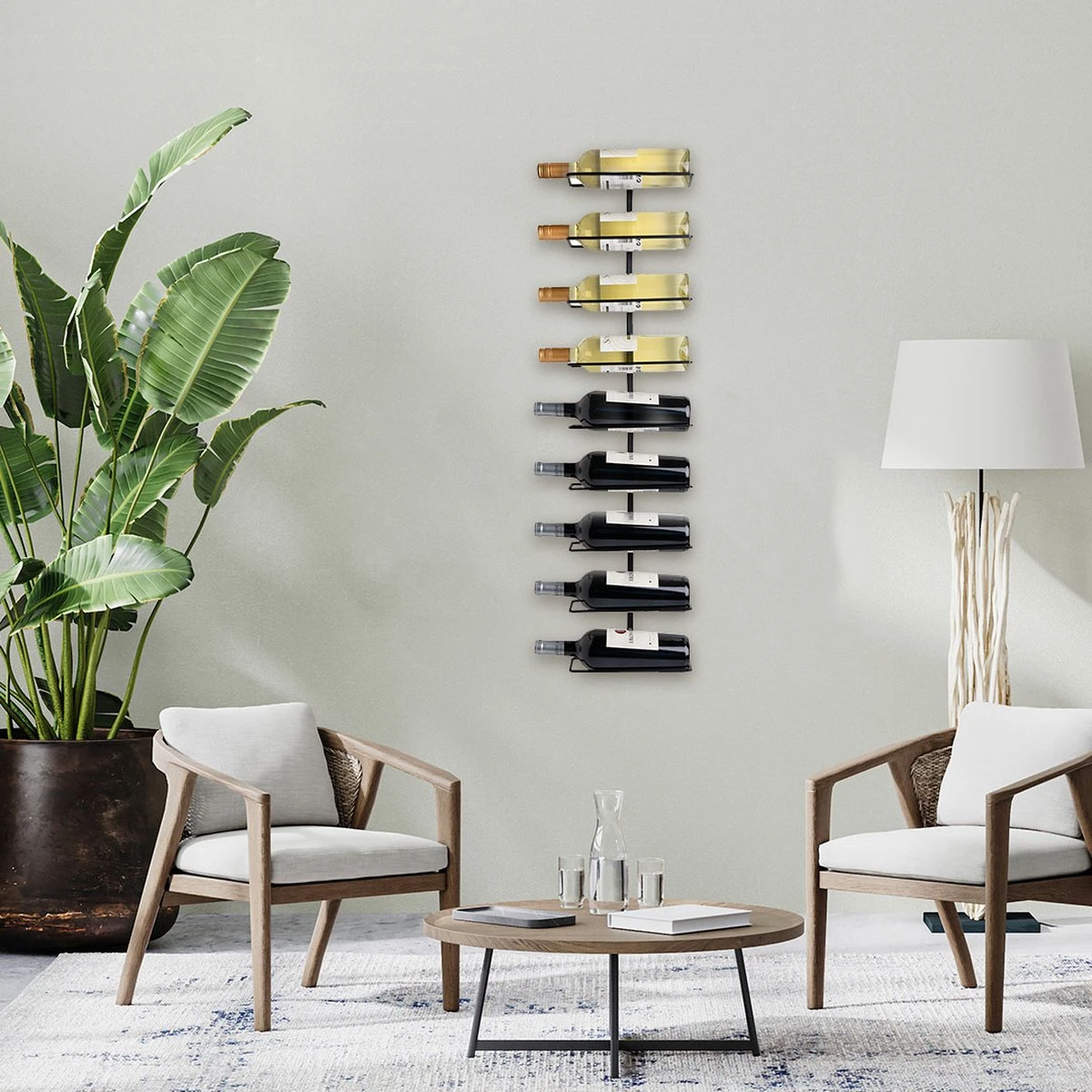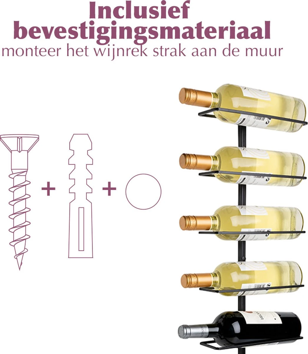 Le porte-bouteilles est en métal noir, ce qui donne un aspect épuré à votre pièce. Vous pouvez également masquer les vis à l’aide des capuchons fournis, pour garantir l’aspect luxueux.