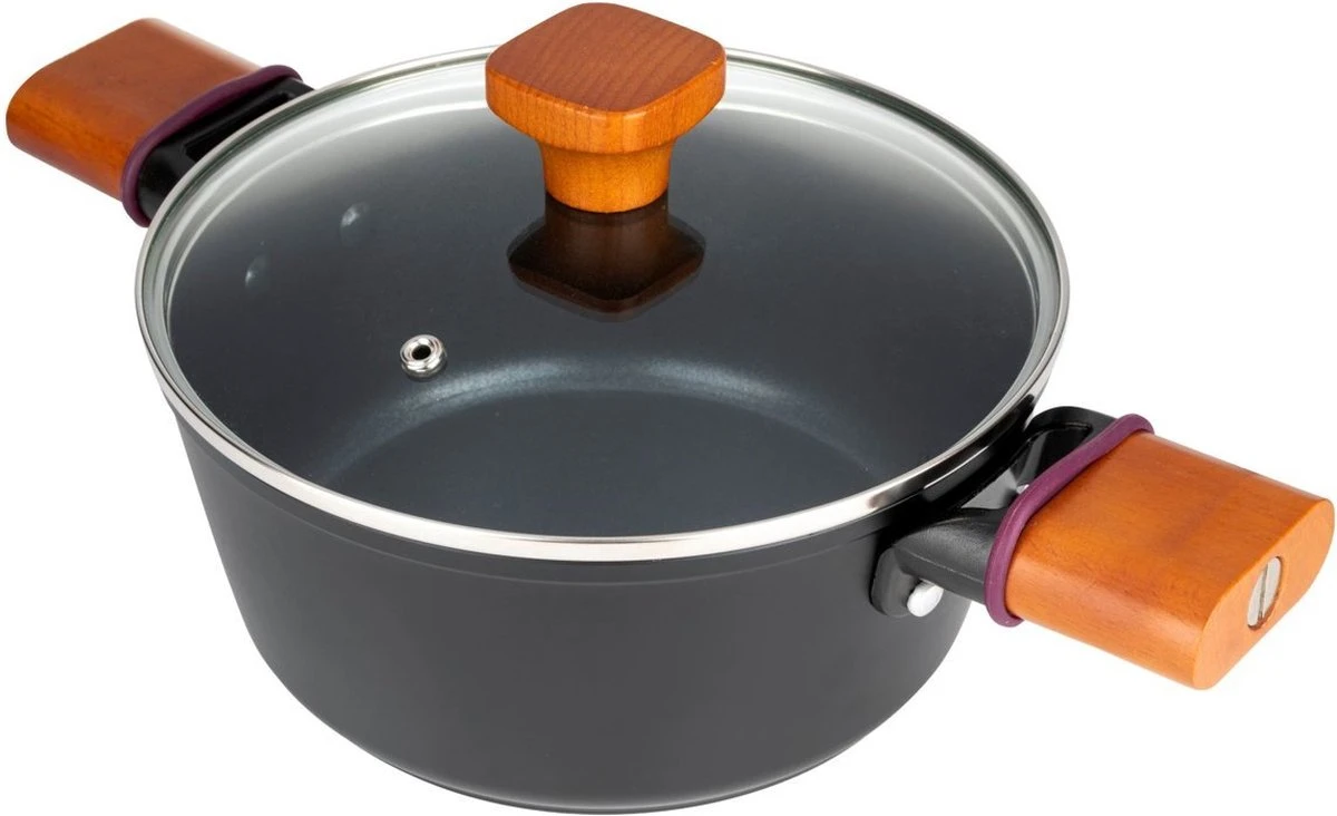 La casserole en aluminium Natura Line est dotée d’un revêtement en céramique à 3 couches qui résiste aux températures élevées et ne se décolore donc pas. Grâce au revêtement antiadhésif, vous pouvez cuisiner avec peu d’huile ou de graisse et il ne colle pas rapidement au fond. Les poignées en bois ne chauffent pas et peuvent être utilisées en toute sécurité à des températures élevées.