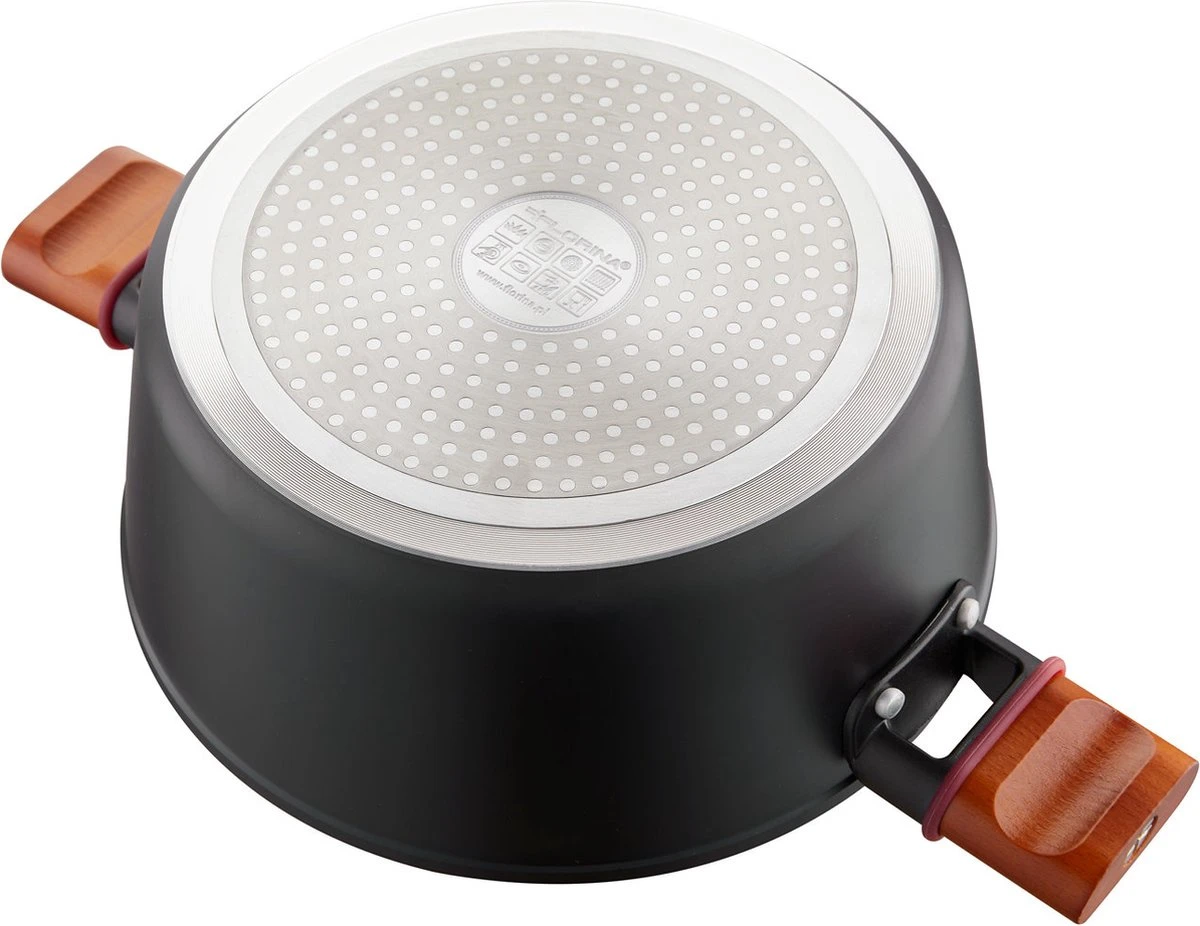 La poêle de cuisson Natura Line a une belle couleur noire mate. Avec les véritables poignées en bois, ils donnent à chaque cuisine un aspect luxueux. Cette combinaison de couleurs est vraiment unique et vous ne la rencontrerez pas de sitôt dans une autre cuisine.
