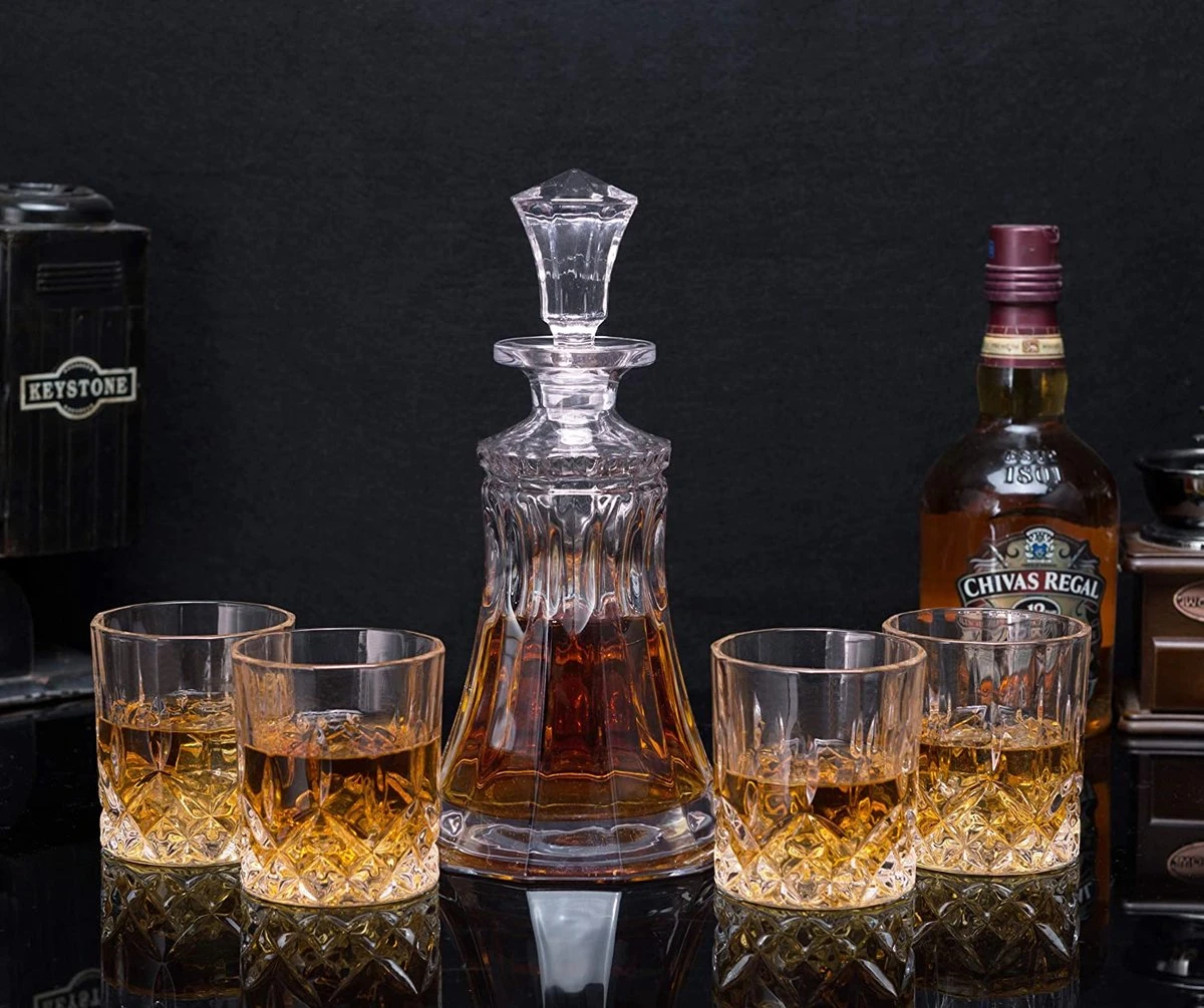 - Set à whisky 5 pièces pour une présentation élégante de vos boissons et whiskies sur n’importe quel plateau de table ou bar, idéal pour les soirées spéciales.