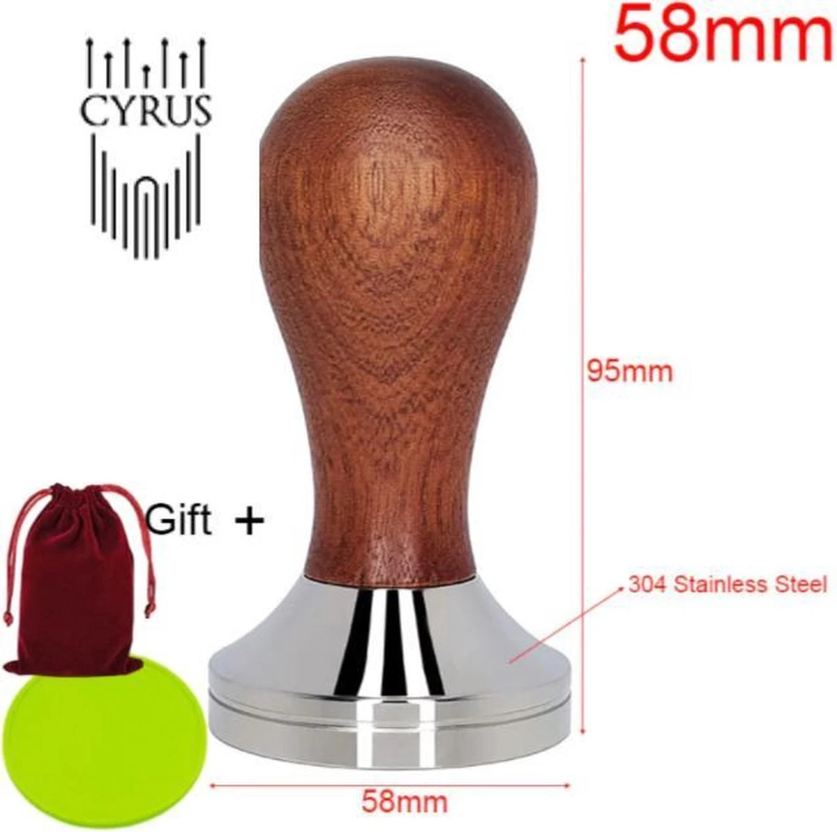 Cyrus Tamper Manche En Hêtre 58 Mm En Acier Inoxydable – Outils Barista – Café Cyrus – Pilon