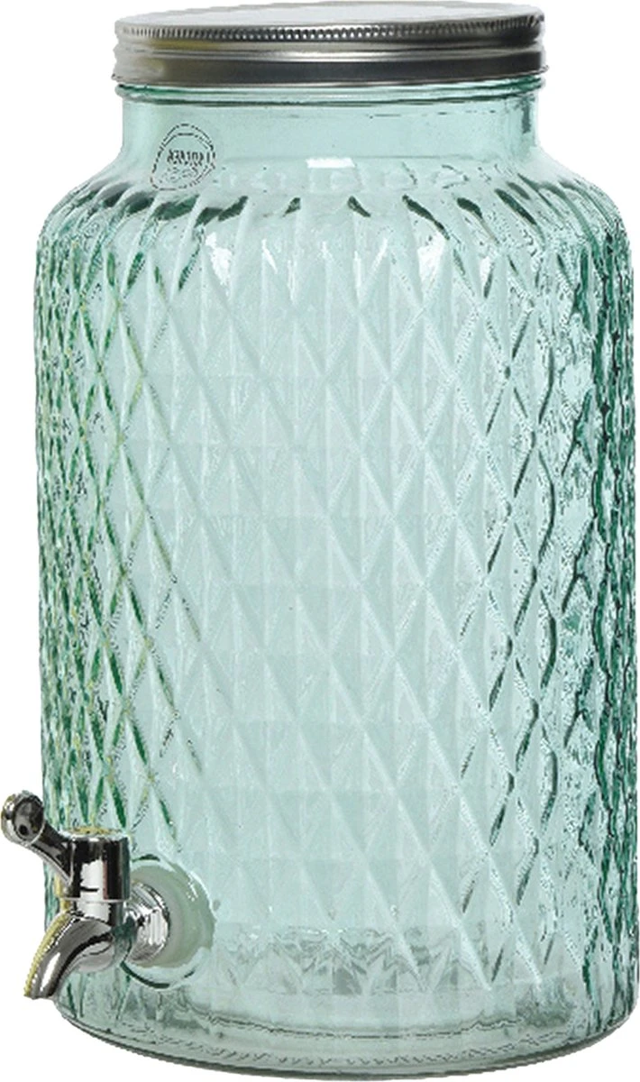 2x distributeur de boissons/robinet de limonade Decoris pour eau, jus et limonade. Retirez le couvercle tournant et remplissez facilement le robinet avec votre boisson préférée. Le couvercle hermétique assure une bonne conservation de la boisson. Après utilisation, le distributeur est facile à nettoyer à la main. Matière : verre. Diamètre : environ 18 cm. Hauteur : environ 25 cm. Contenu: environ 5,5 litres.