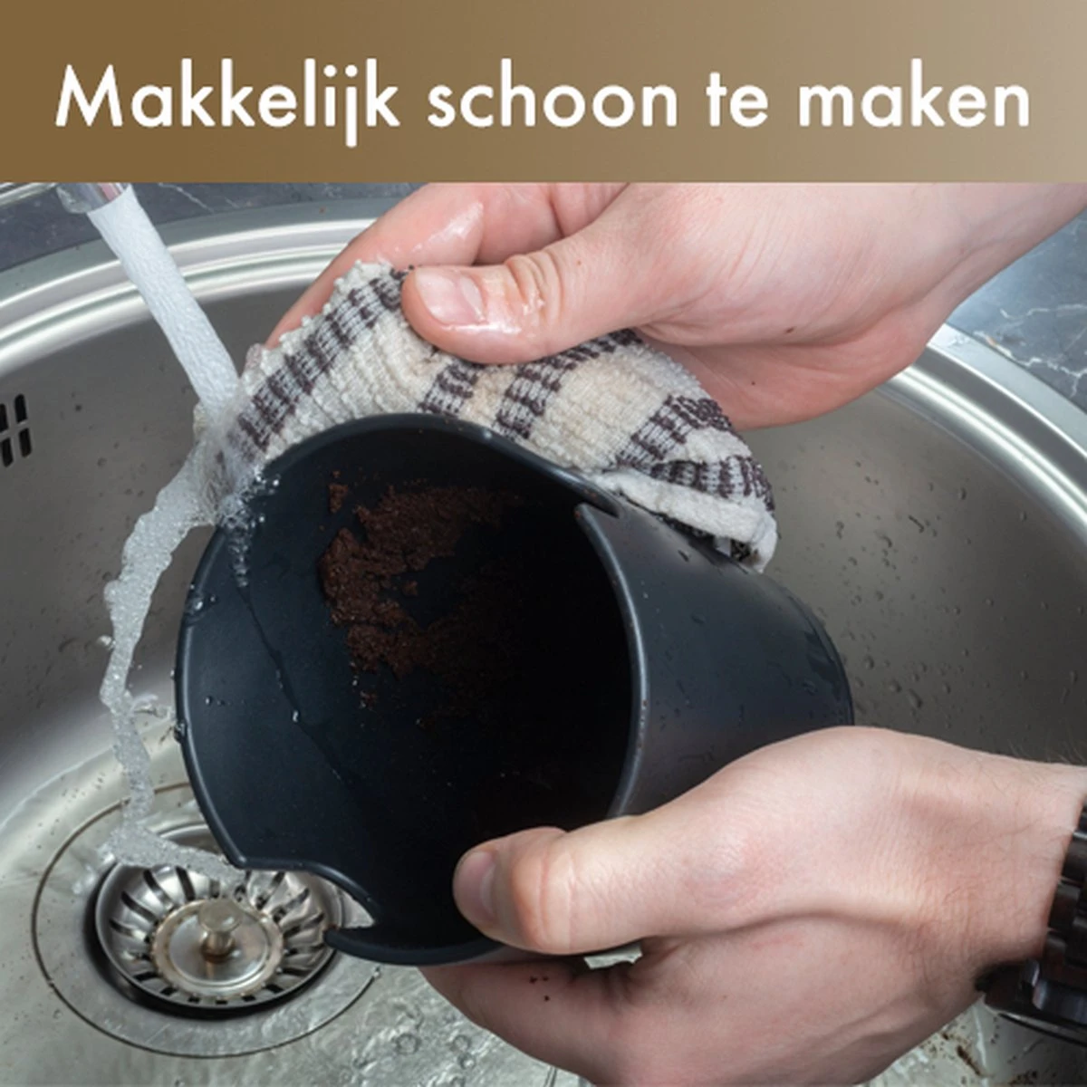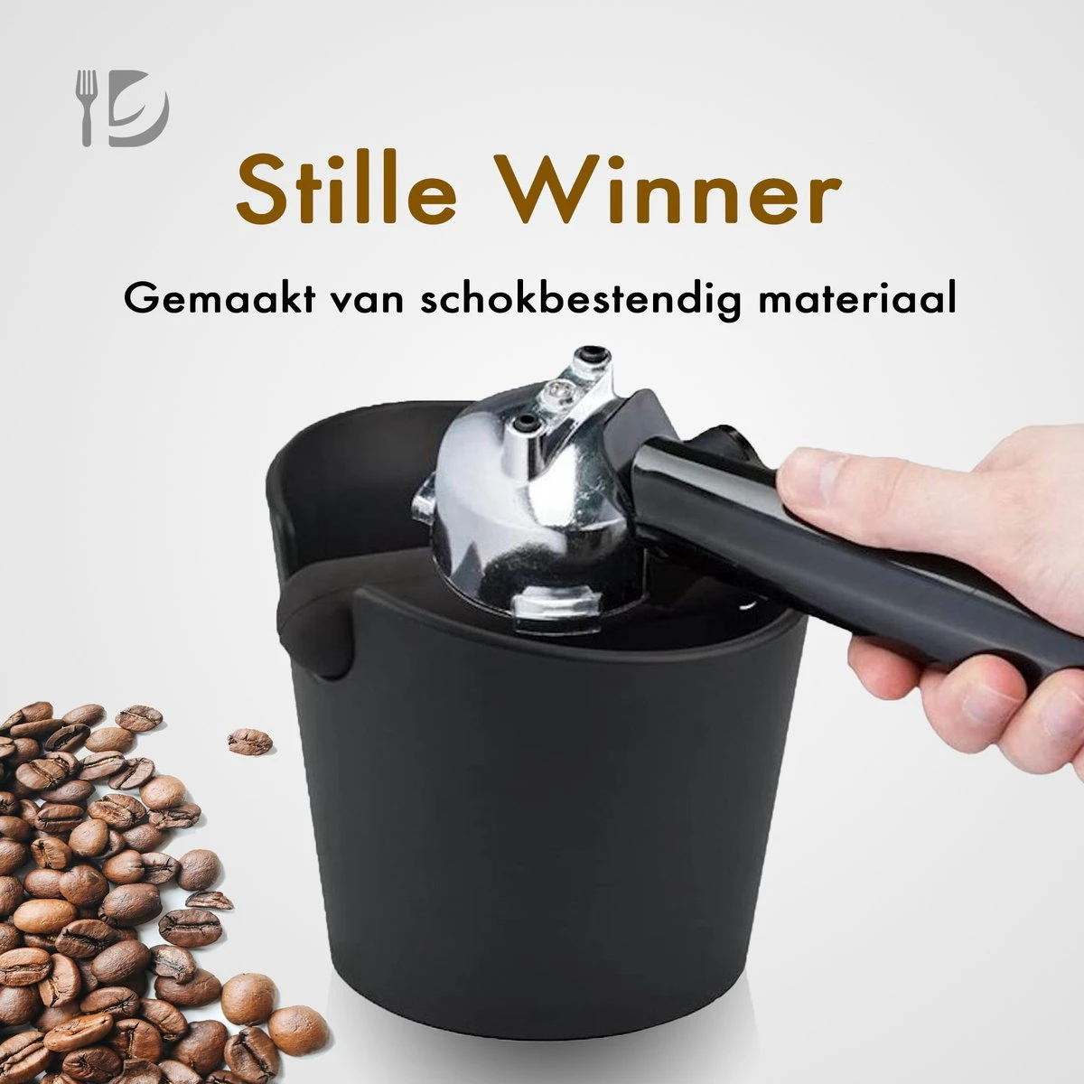 Le fond de la knockbox est fini avec un anneau en silicone. Parce que le bol à frapper a un anneau en silicone, le plan de travail n’est pas endommagé et le bol reste fermement en place pendant le frappement. Le bol knock-out a une conception absorbant les chocs, ce qui rend le bol silencieux et durable. La tige de frappe en métal robuste est dotée d’un manchon en silicone pour protéger votre porte-filtre. La tige de frappe est amovible, de sorte que vous pouvez facilement vider le récipient. Enfin, le plateau amovible passe au lave-vaisselle, il est donc facile à nettoyer !