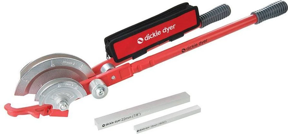 Poignées robustes en acier au carbone avec surfaces durables et antidérapantes. Pour le cintrage sans pli de tuyaux de 15 à 22 mm jusqu’à 180 °. Peut être utilisé sur un établi ou monté dans un étau pour un pliage facile. Poche zippée en nylon pour un rangement organisé des conducteurs. À utiliser avec des tuyaux en cuivre, en aluminium et en acier léger. L’ensemble contient des guides en aluminium de 15 et 22 mm et un sac à glissière en nylon.