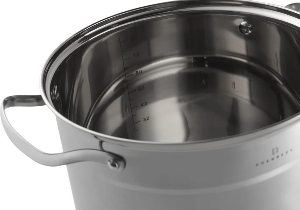 Profil pratique du bord de la casserole pour empêcher les liquides de se répandre pendant la cuisson. La casserole a des poignées rivetées. Vous pouvez utiliser la casserole en toute sécurité dans un lave-vaisselle. Les casseroles conviennent à toutes les sources de chaleur: électrique, gaz, céramique, halogène et induction.