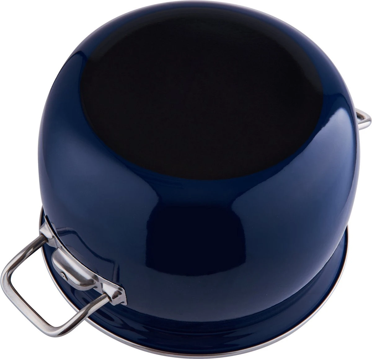 Êtes-vous également à la recherche d’un nouveau plat de cuisson ? Cette poêle de cuisson unique d’Emalia de couleur bleu marine complète votre cuisine. Les parois émaillées maintiennent les aliments au chaud plus longtemps et aucune substance nocive ne pénètre dans vos aliments. La poêle peut sembler rétro, mais elle convient à toutes les techniques de cuisson modernes telles que l’induction. Le plat de cuisson est disponible en 5 tailles différentes.