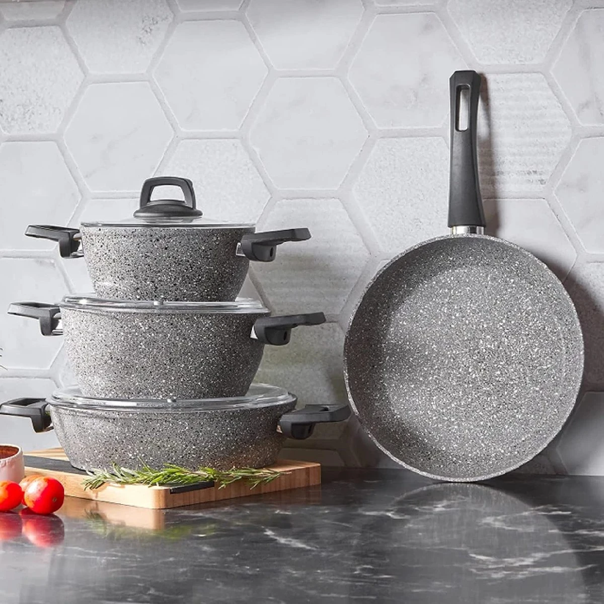 - Caractéristiques : surface extérieure étanche, revêtement antiadhésif réfractaire maximum à l’intérieur, facile à utiliser, poignées élégantes, gain de temps et d’énergie maximum, revêtement intérieur et extérieur en granit facile à nettoyer et matériau de casserole de 4 mm d’épaisseur. Grâce au couvercle en verre spécial résistant à la chaleur, le processus de cuisson peut être facilement suivi. Lave-vaisselle.