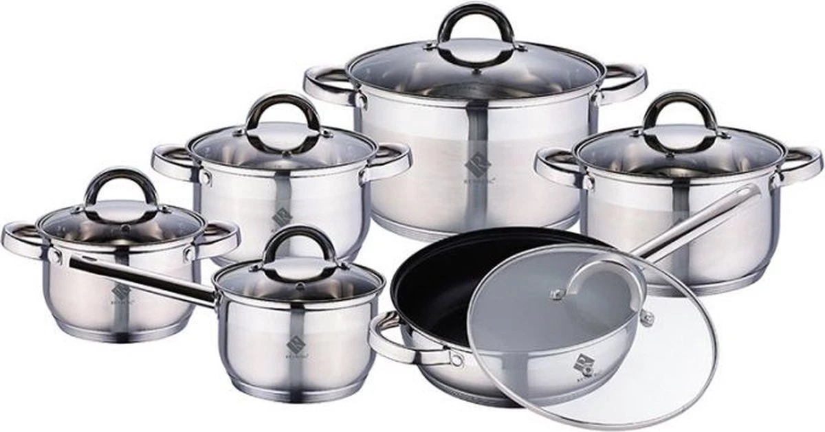 Ensemble de casseroles en acier inoxydable avec couvercles (12 pièces)