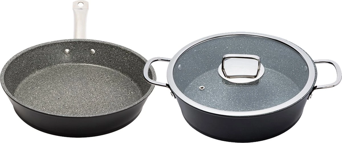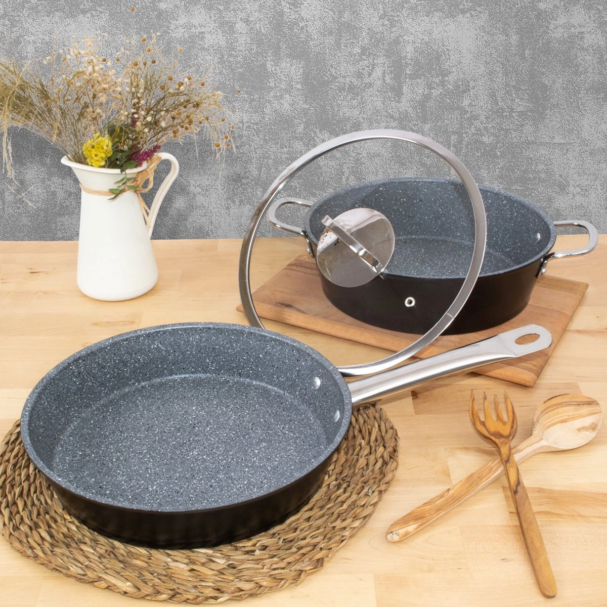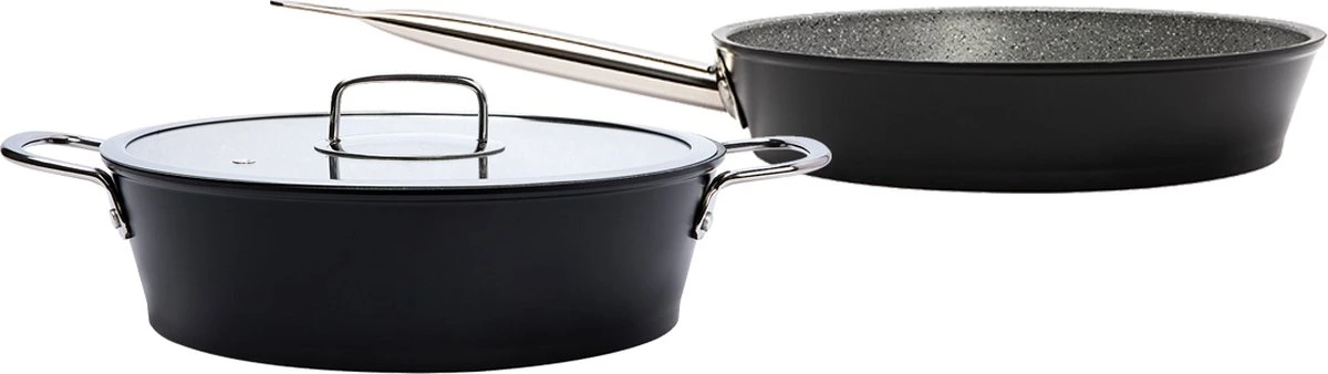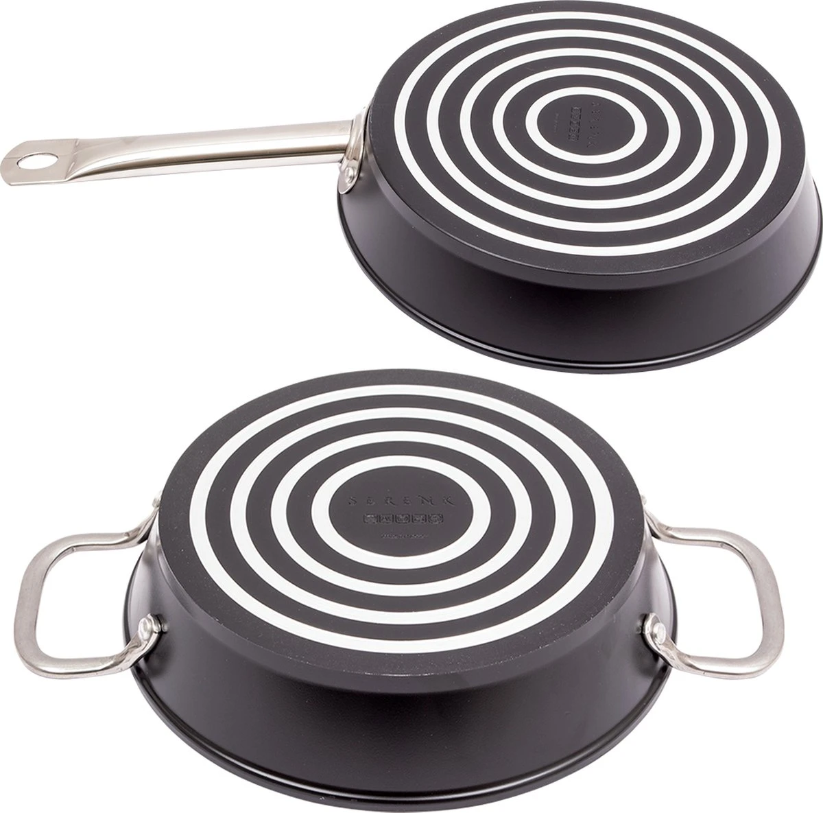 Les poêles universelles Serenk Excellence Collection se font un naam en tant que compagnon moderne dans la cuisine. Cette batterie de cuisine de haute qualité, durable et facile à utiliser fera passer votre expérience culinaire au niveau supérieur. Les poêles antiadhésives Serenk sont fabriquées en granit de haute qualité, qui est renforcé avec le matériau spécial PTFE pour être plus durable, fonctionnel et techniquement meilleur. C’est pourquoi les casseroles et poêles Serenk sont sûres, non toxiques, antiadhésives et durables. Cela crée une couche de saveur qui assure une forme élégante et un nettoyage facile.