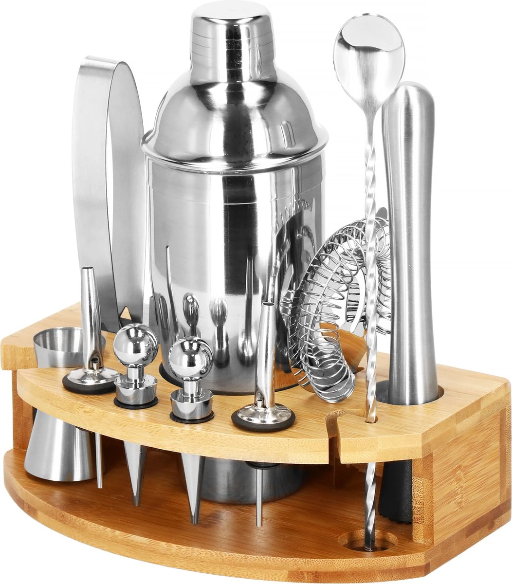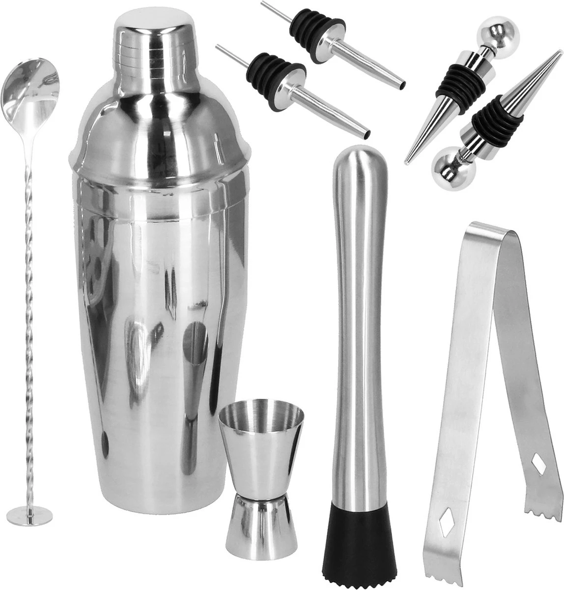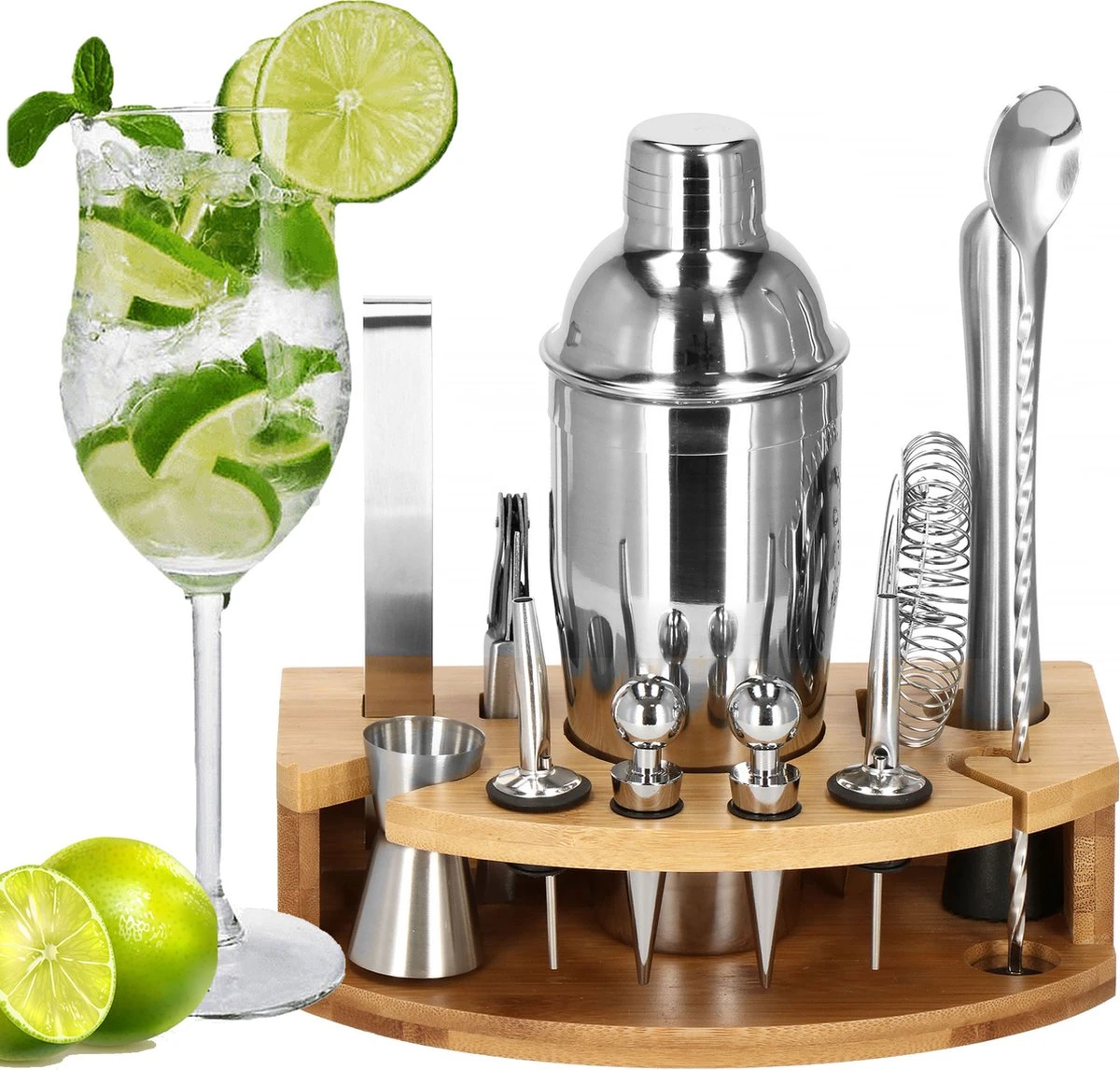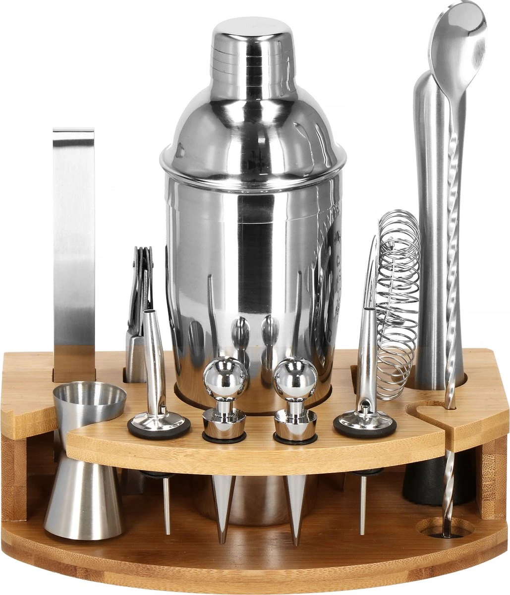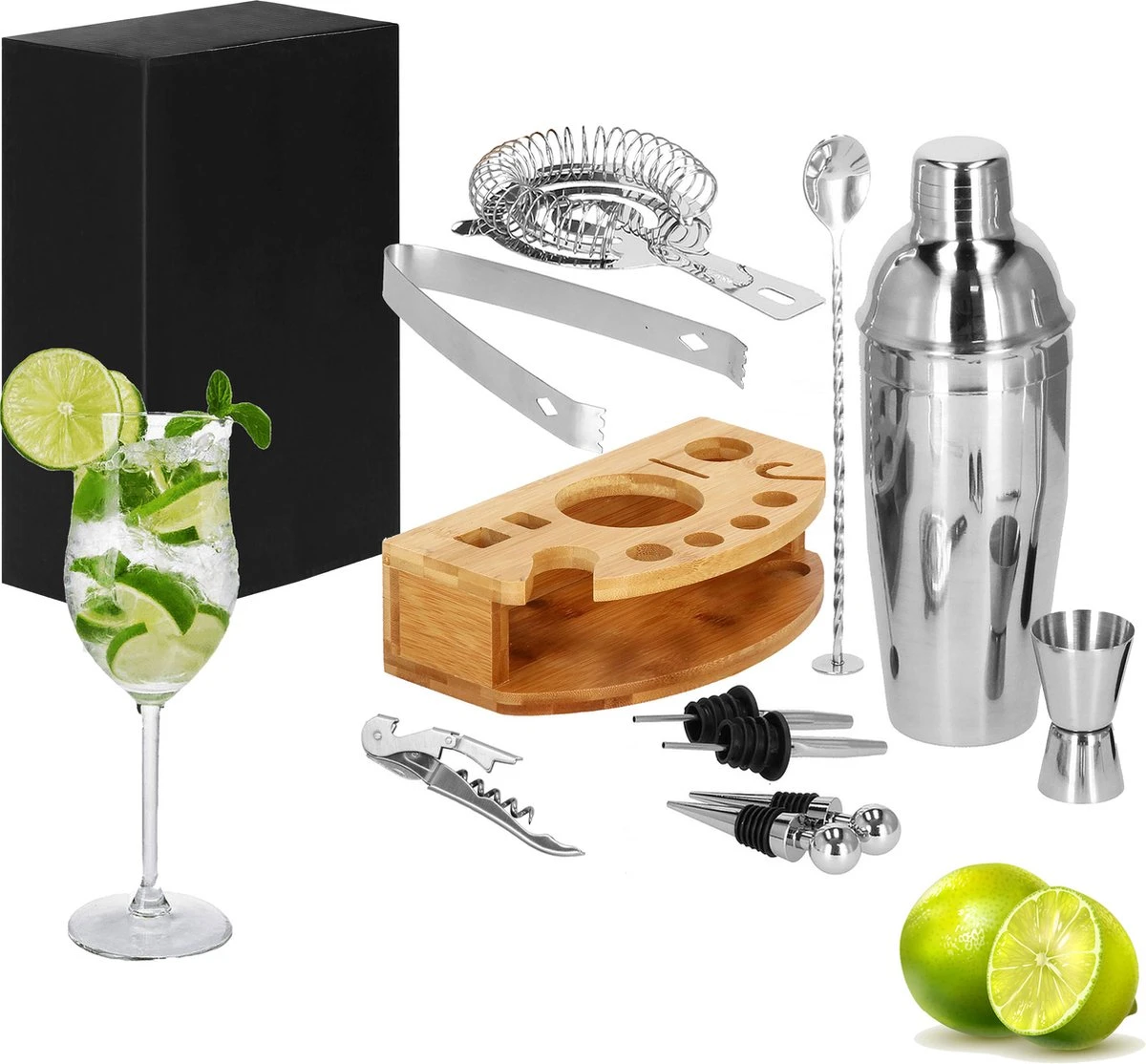 L’élégant set à cocktail se compose de pas moins de 11 accessoires différents et dispose d’un support durable en bambou. L’ensemble contient un joli grand shaker, un filtre de barman avec lequel vous pouvez séparer les ingrédients inutiles de la boisson (par exemple, les résidus de fruits) et un pilon de luxe avec lequel vous pouvez extraire des arômes supplémentaires du fruit. Les autres accessoires vous permettront de préparer les meilleures créations tel un vrai patron des cocktails. Tous les accessoires sont en acier inoxydable et résistent à la corrosion et aux rayures. Vous pouvez préparer les cocktails les plus savoureux en un rien de temps, alors secouez-le jusqu’à ce que vous le fassiez !