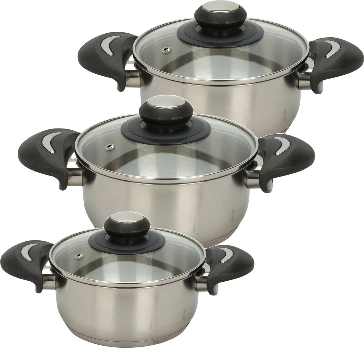 Excellent Houseware ensemble de Casseroles de cuisson de cuisine de 3 pièces avec couvercle en verre. Matériau : acier inoxydable. Avec des capacités de 1,4 / 1,8 / 2,7 litres. Ces casseroles avec couvercles en verre et anses en bakélite ont les dimensions : 16 x 10 cm, 20 x 10 cm et 22 x 12 cm. Le couvercle transparent est pourvu d’un trou d’aération à travers lequel la vapeur peut s’échapper. Convient à toutes les sources de chaleur. Matériau : acier inoxydable. Convient pour les légumes, les sauces, les pommes de terre et plus encore.