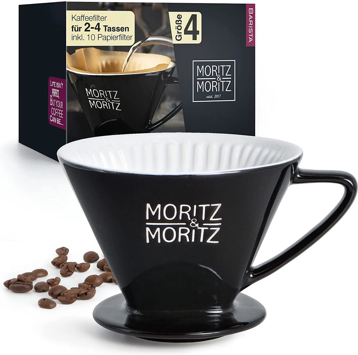 - Classique: filtre à café en porcelaine Moritz & Moritz, éprouvée, céramique réfractaire, noire, glaçure anti-rayures, goût neutre
