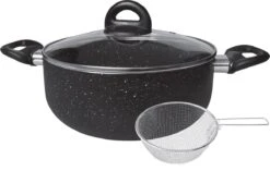 La poêle est livrée avec un panier pour la friture, sans le panier, la poêle peut également être utilisée comme poêle de cuisson ordinaire. La poêle a un revêtement antiadhésif et convient à toutes les sources de chaleur. La capacité de la casserole est de 6,5 litres.