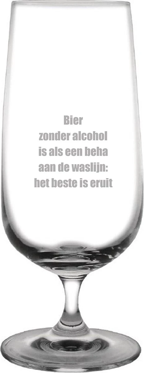 Verre à bière sur pied avec la gravure La Bières sans alcool est comme un soutien-gorge sur la corde à linge : le meilleur est sorti. Avez-vous votre propre idée? veuillez nous contacter Attention ! Ce produit est gravé. La couleur de l’image peut différer de la gravure sur le produit.