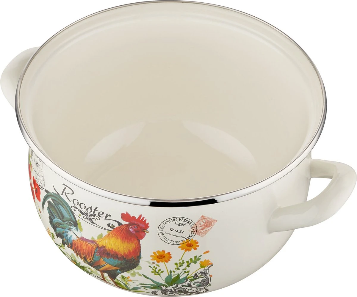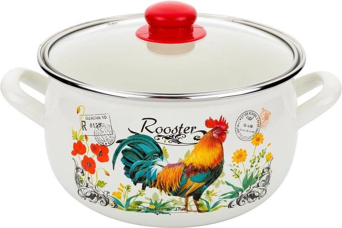 Voulez-vous un look complètement différent dans votre cuisine? Faites-le avec cet ensemble de casseroles rétro en émail. La couleur crème vintage ainsi que la belle décoration de coq ont un aspect vintage mais conviennent aux techniques de cuisson les plus modernes. Que vous cuisiniez électriquement ou au gaz, les deux sont possibles avec ces poêles. Il est livré avec un couvercle en verre assorti.