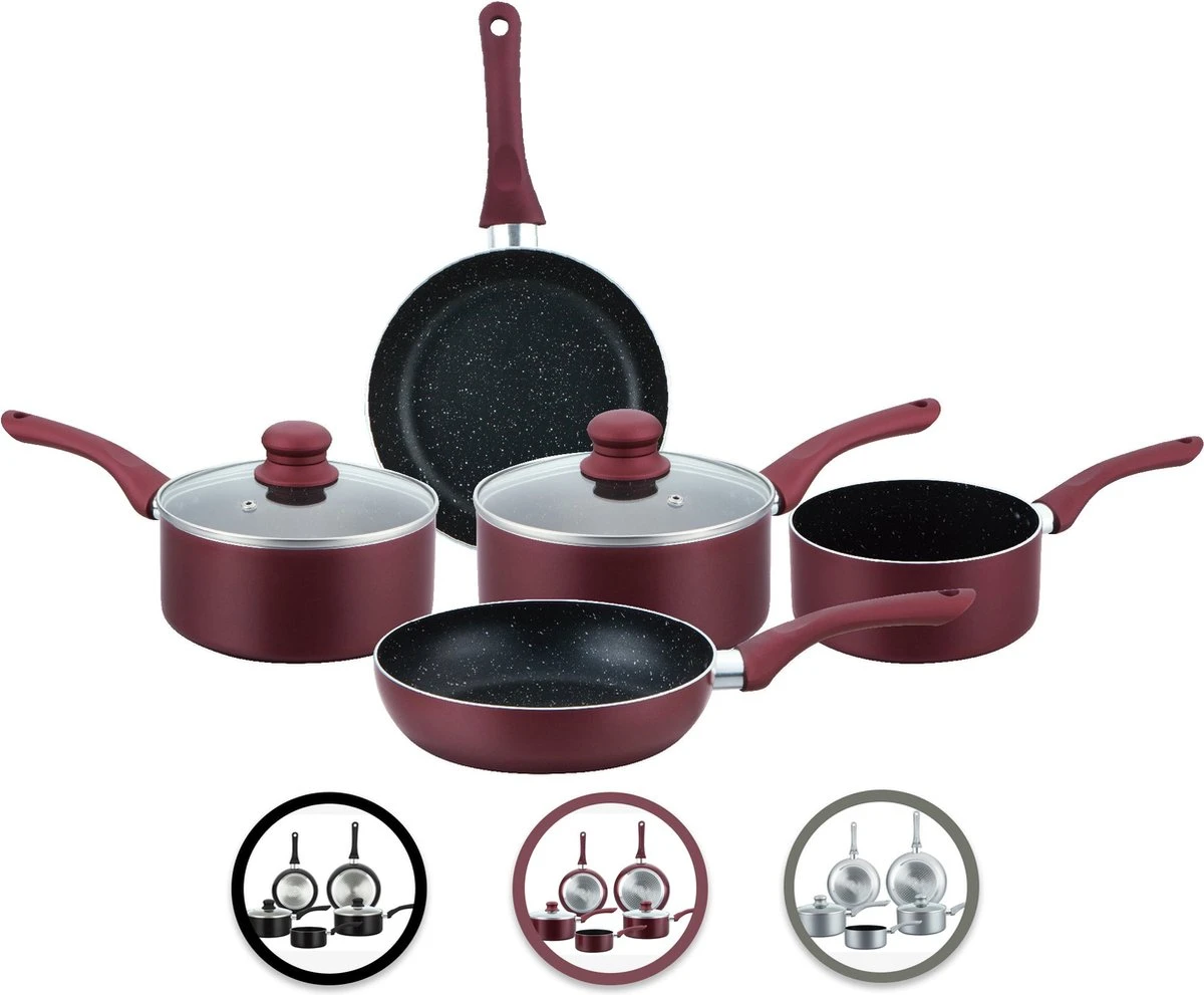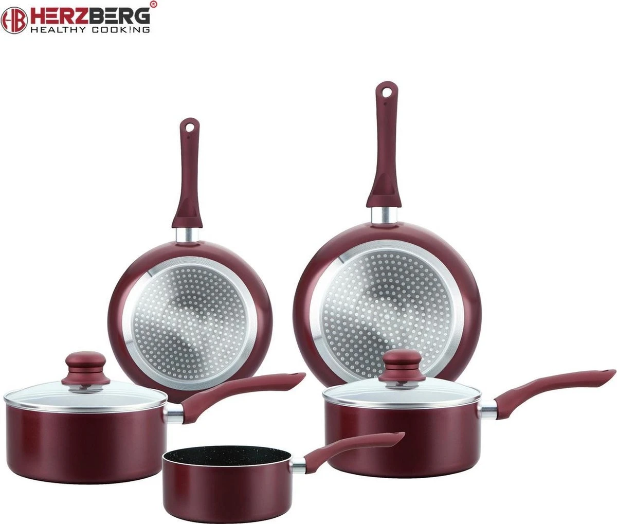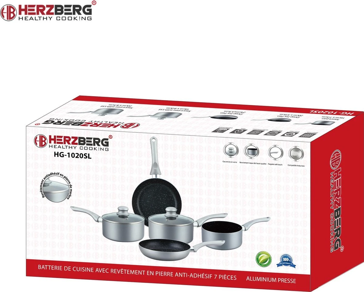 Herzberg HG-1020 : Set de casseroles 7 pièces avec revêtement antiadhésif et revêtement en pierre