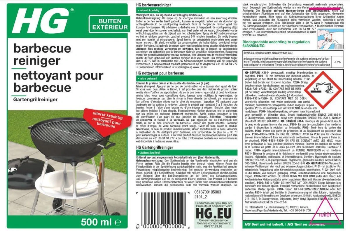 - Vaporisez le nettoyant barbecue HG sur la surface à nettoyer et laissez agir le nettoyant barbecue pendant 3 à 5 minutes.