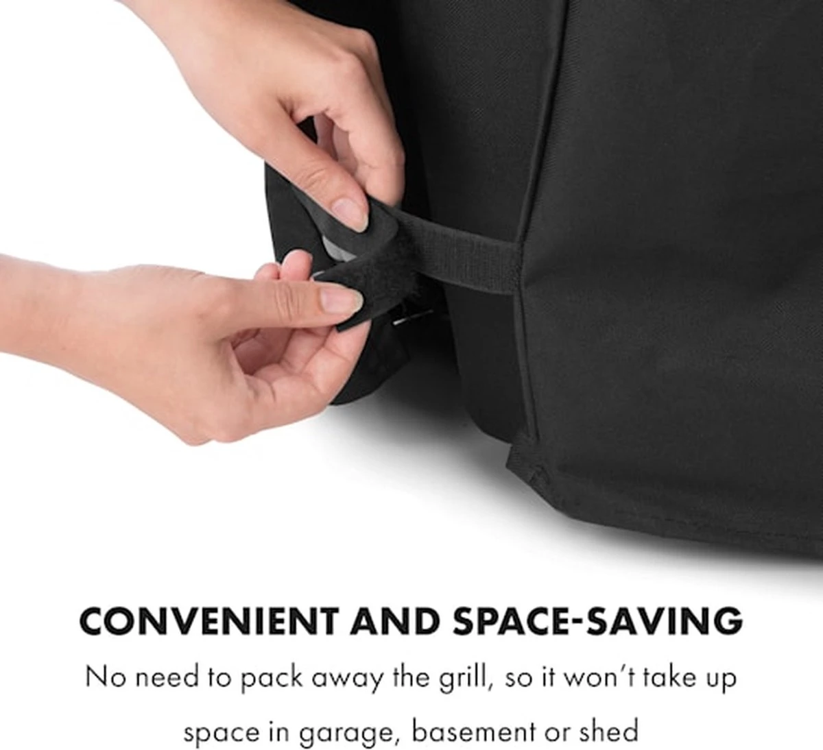 Le Tomahawk de Klarsteincouvercle de protection s’adapte parfaitement au barbecue à gaz 3 feux du même nom, même lorsque les tables d’appoint sont dépliées ! Il vous suffit de le tirer et le tour est joué – à l’avenir, vous n’aurez plus à le déplacer et à le ranger encombrant et fastidieux. L’extrêmement robustecouvercle de protection est fait de toile extra lourde 600D. Ce n’est pas seulement imperméable et résistant à la déchirure, mais grâce au mélange de matériaux de 30 % polyester et 70 % PVC, il est également très facile à nettoyer. Cela signifie qu’à partir de maintenant, le barbecue peut simplement être laissé sur le lieu d’utilisation, protégé du vent et des intempéries et prêt à être utilisé à nouveau en quelques étapes simples.