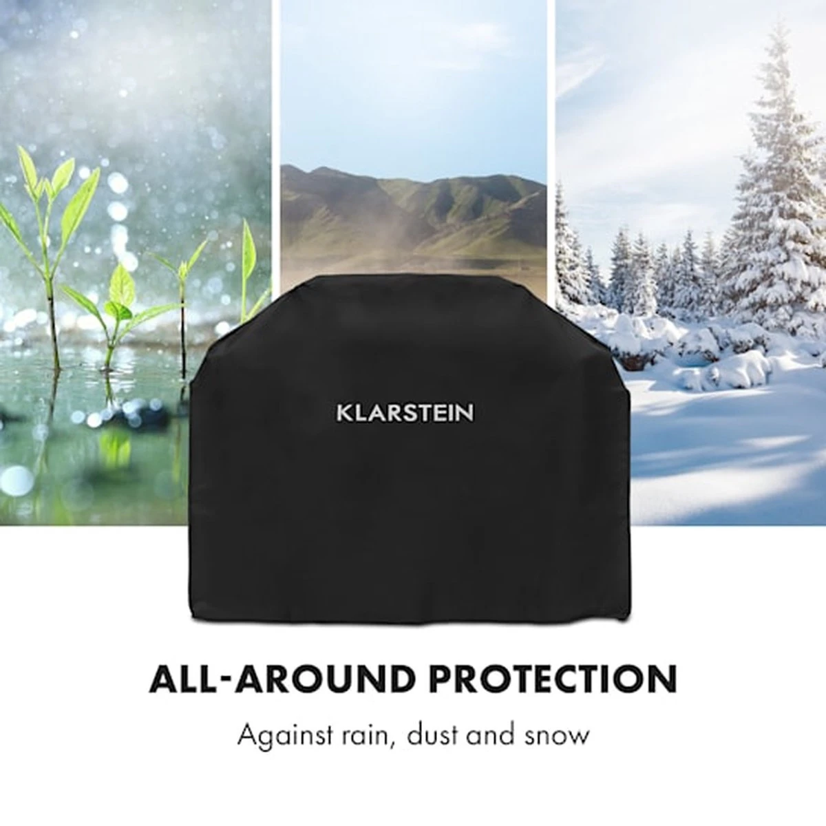 La solution pratique pour le barbecue : sous le Klarstein Tomahawkprotection de pluie trouve que le barbecue à gaz Tomahawk est l’abri parfait – qu’il s’agisse d’averses estivales ou de repos hivernal.