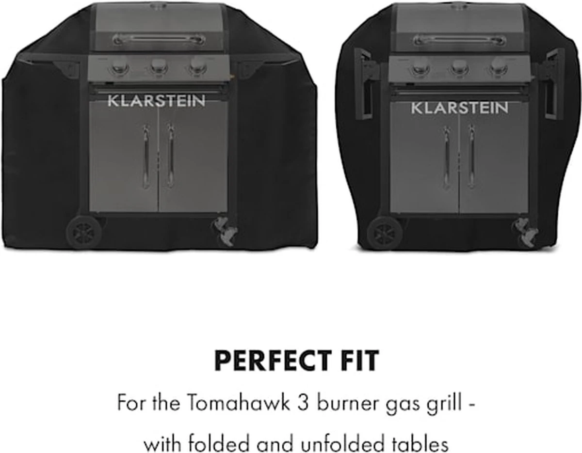 - Ajustement parfait : pour le barbecue à gaz Tomahawk à 3 brûleurs – avec tables d’appoint repliées et dépliées