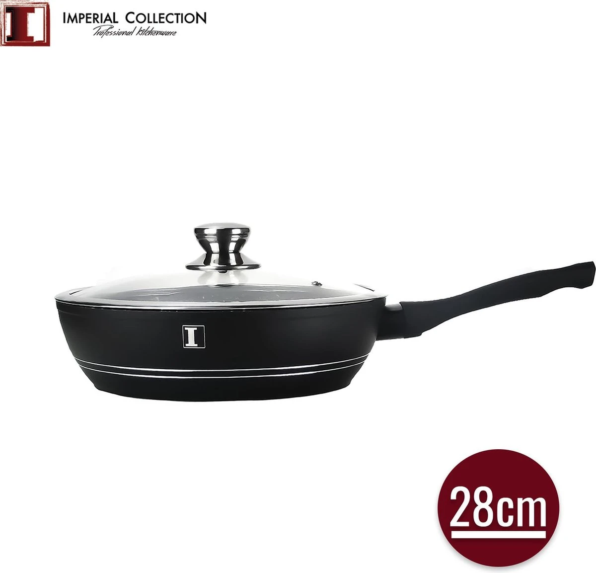 La Imperial Collection est une gamme professionnelle d’ustensiles de cuisine, avec cette friteuse, vous cuisinez comme un vrai chef étoilé. La casserole peut être utilisée sur presque toutes les sources de chaleur; plaques à induction, gaz, céramiques, électriques, radiantes, pour ne jamais être confronté à des surprises en tant que chef. La poêle en fonte a un revêtement en marbre de haute qualité avec un revêtement antiadhésif en pierre noire et des poignées au toucher soft .