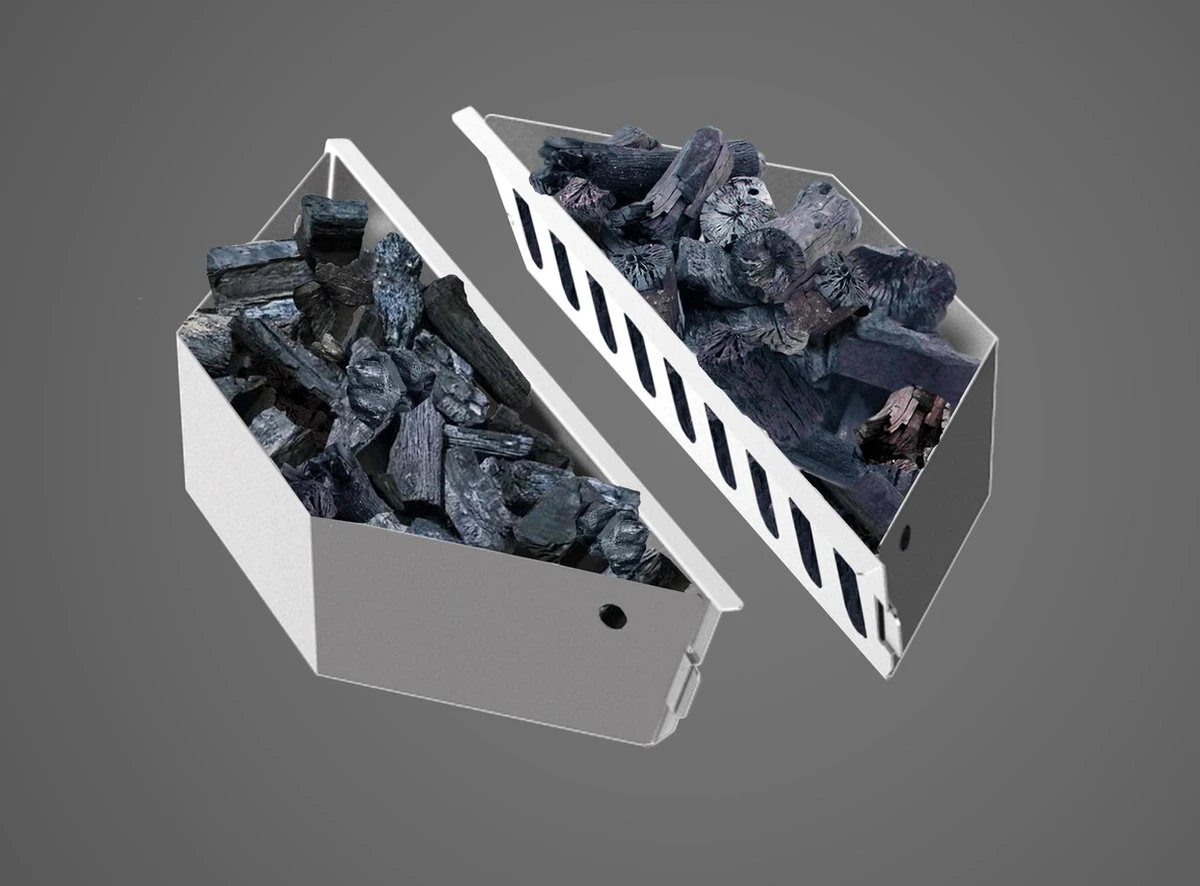 Set de 2 porte-briquettes en acier inoxydable durable (SS) Spécialement développé pour une utilisation dans les barbecues à boules de 47 et 57 CM. Ces porte-briquettes (lot de 2 pièces) maintiennent les charbons bien en place afin que vous puissiez obtenir un développement de chaleur plus précis et mieux positionné. Plus durable que les porte-briquettes en acier aluminisé proposés par d’autres fabricants!