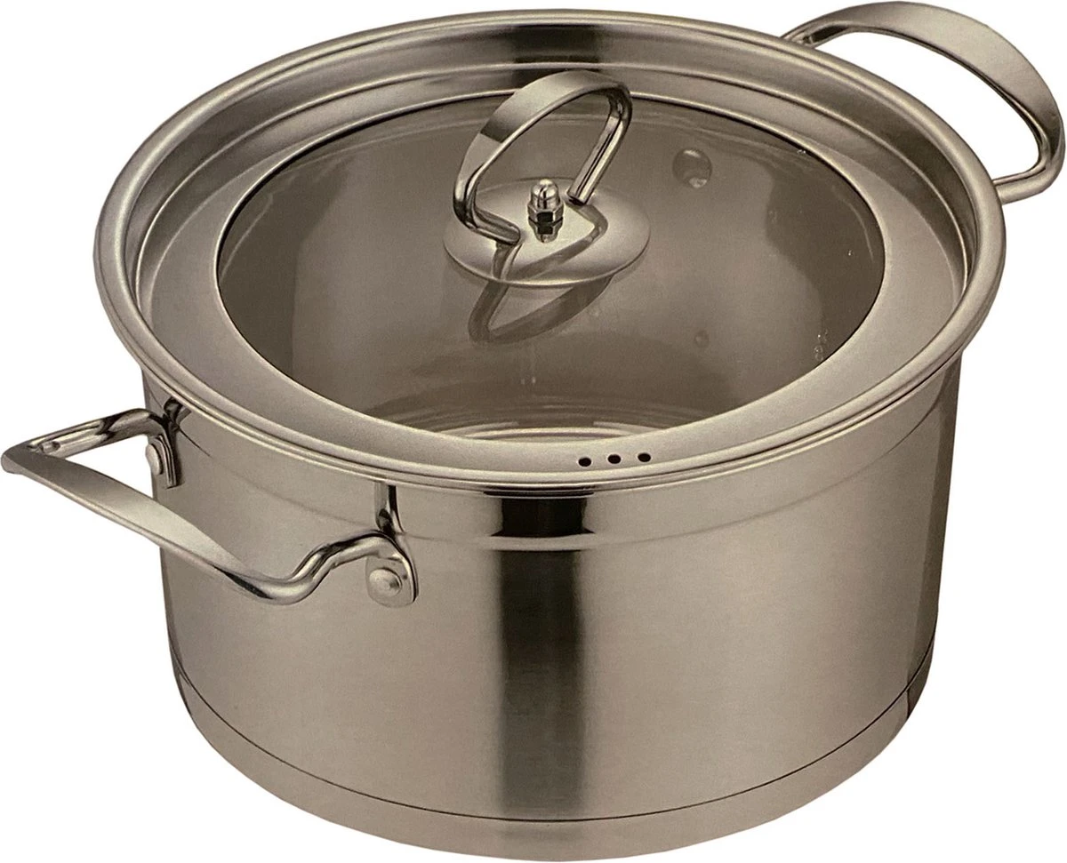 La poêle convient à tous les types de sources de chaleur, y compris l’induction. Le fond est en acier inoxydable forgé à trois couches de haute qualité. Les casseroles peuvent également être utilisées au four (sans couvercle).