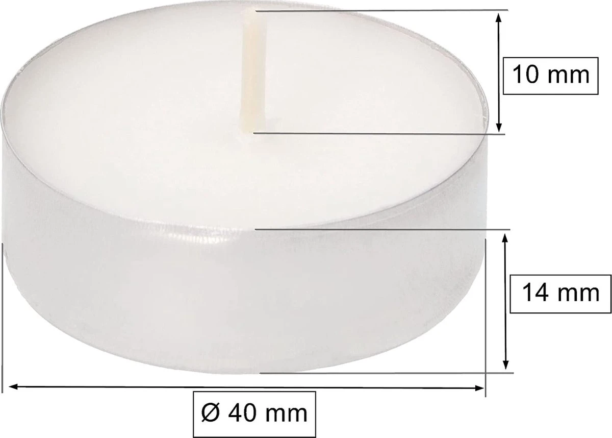 - DONNÉES TECHNIQUES – le thé sonne 4 heures de combustion – hauteur : 14 mm, longueur de la mèche : 10 mm, diamètre : 40 mm, poids : 1118 g