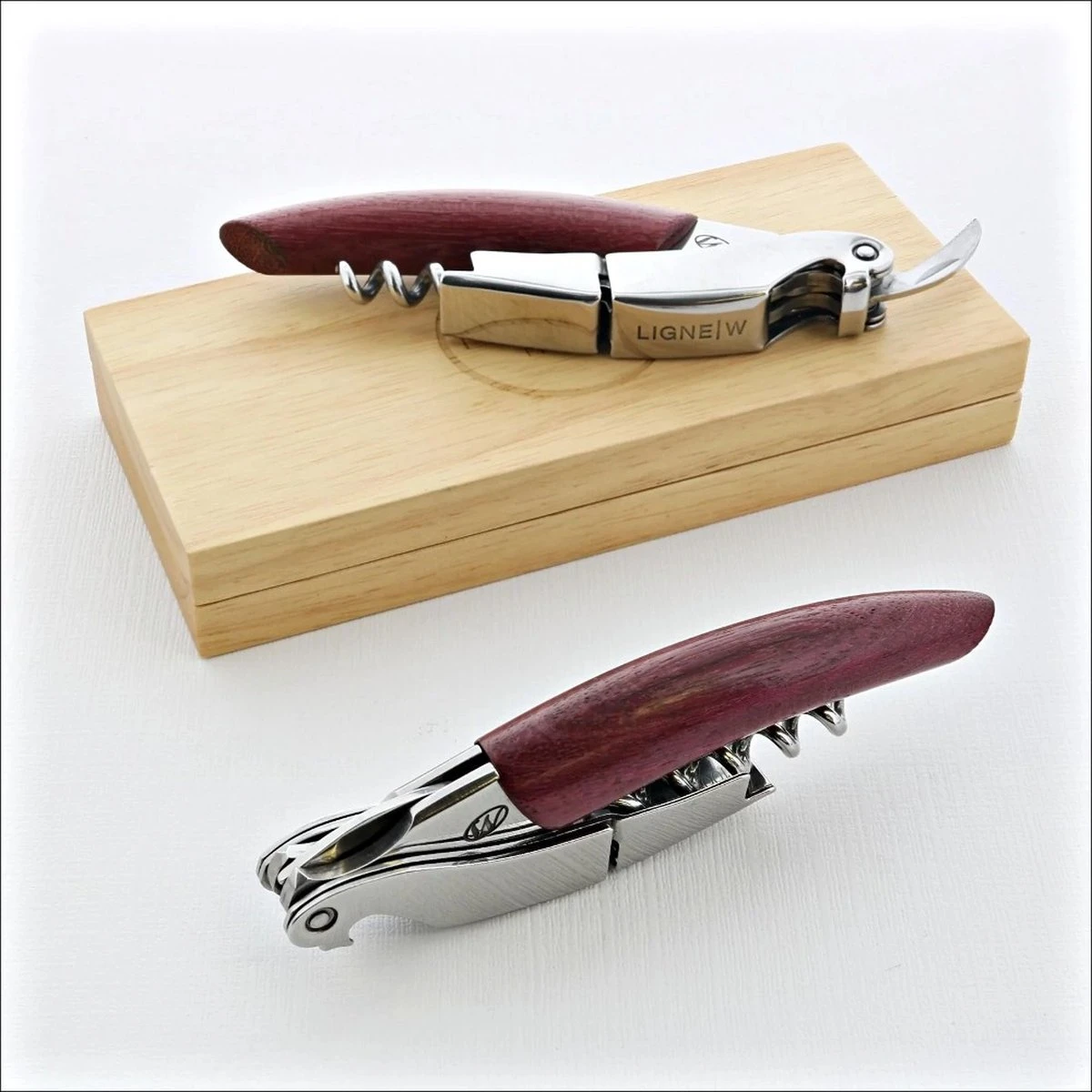 Il est doté d’un coupe capsule dentelé et d’un décapsuleur.