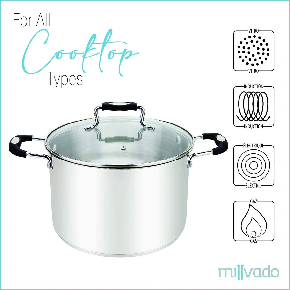 | Convient à type de source de chaleur | Convient à toutes les sources de chaleur,Électrique,Gaz,Céramique,Induction,Halogène |