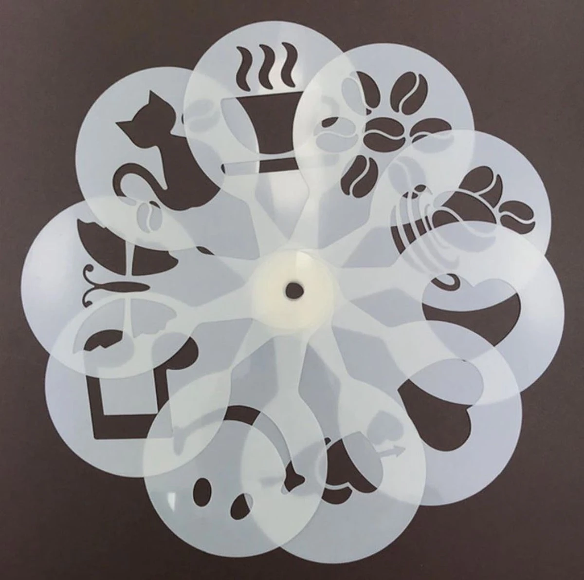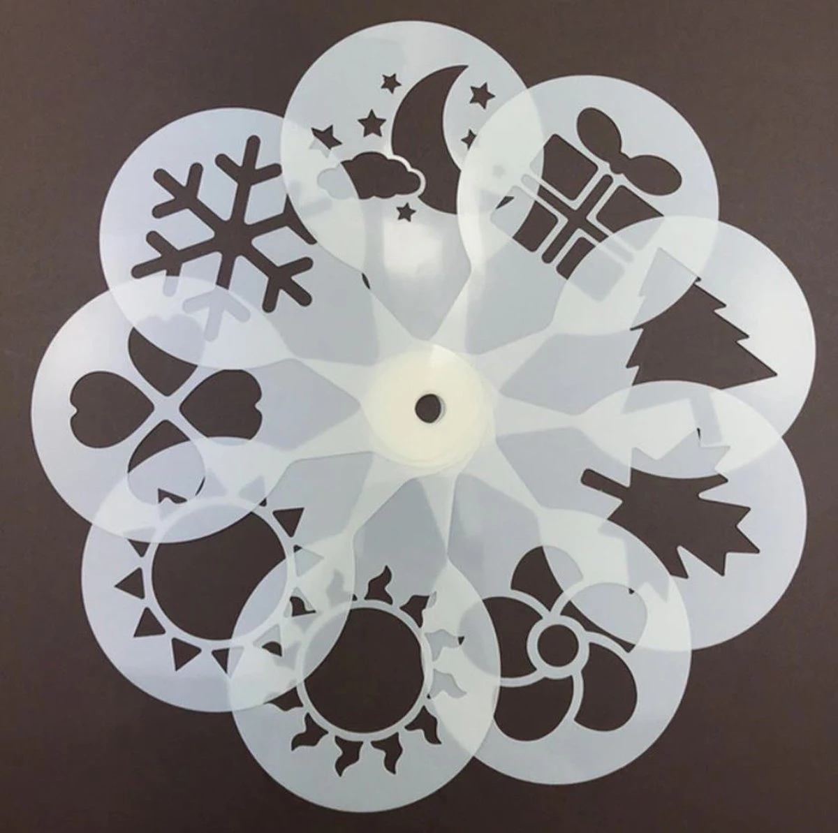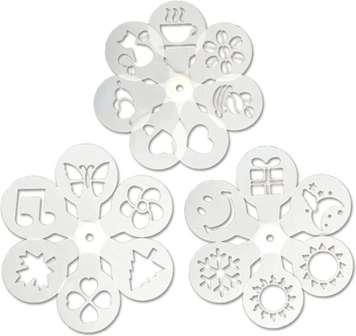 Moule pour saupoudrer des gâteaux ou du café avec du sucre glace, du cacao ou d’autres décorations. En plastique, donc lavable et réutilisable.