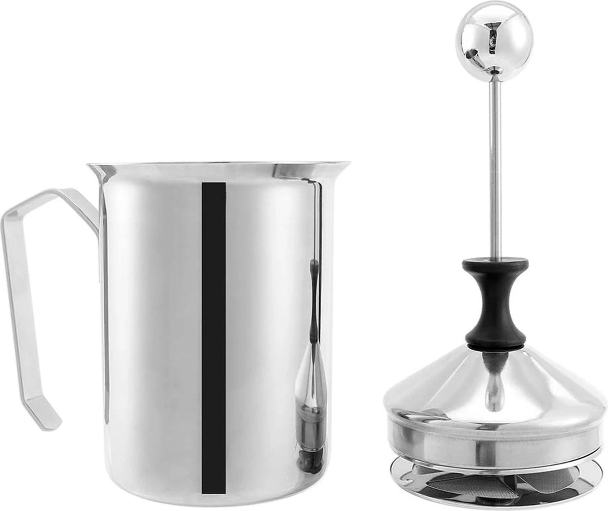- Acier inoxydable 304 entièrement épaissi : il est fabriqué en acier inoxydable 304 épaissi, il est donc plus durable que les autres mousseurs à lait manuels et a une sensation de grande qualité.