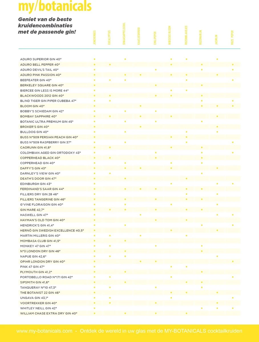 Vous trouverez ci-joint une liste de 50 gins différents et de leurs meilleurs produits botaniques. Profitez des meilleures combinaisons d’herbes avec le gin approprié !